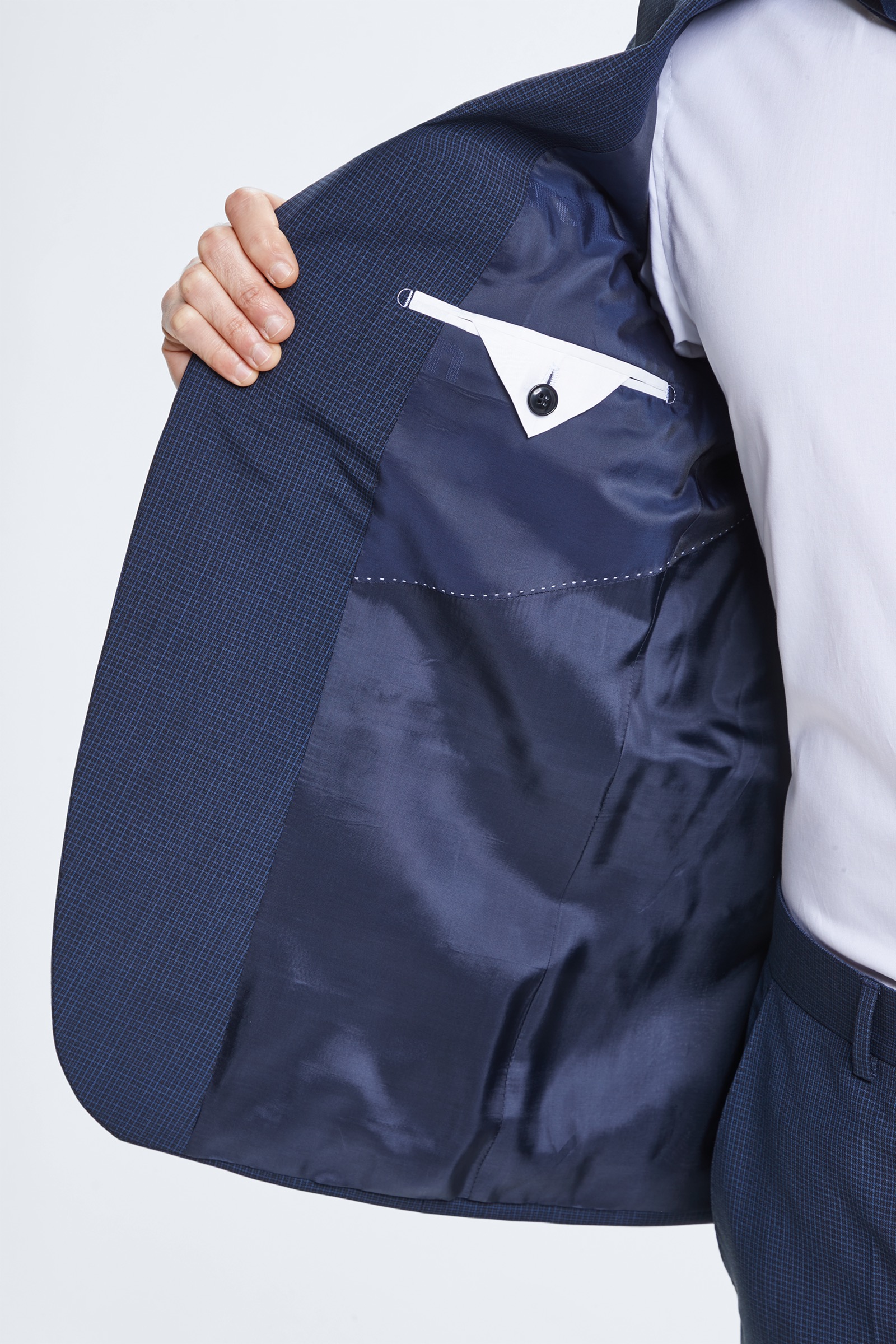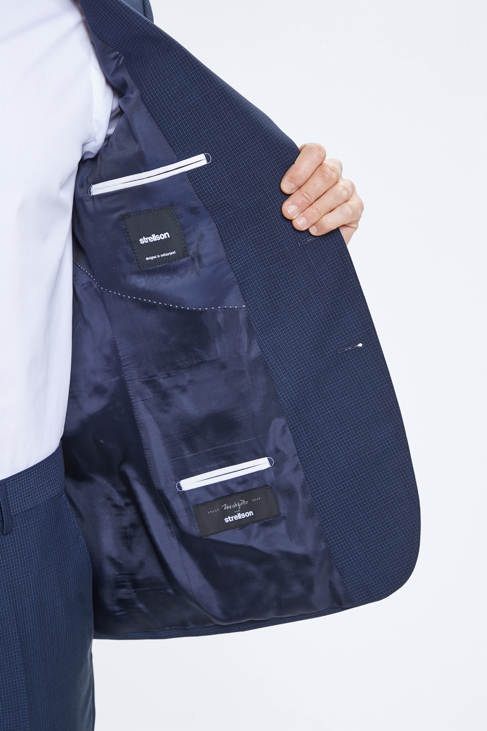 • Oberstoff: Reine Schurwolle in dezent karierter Qualität