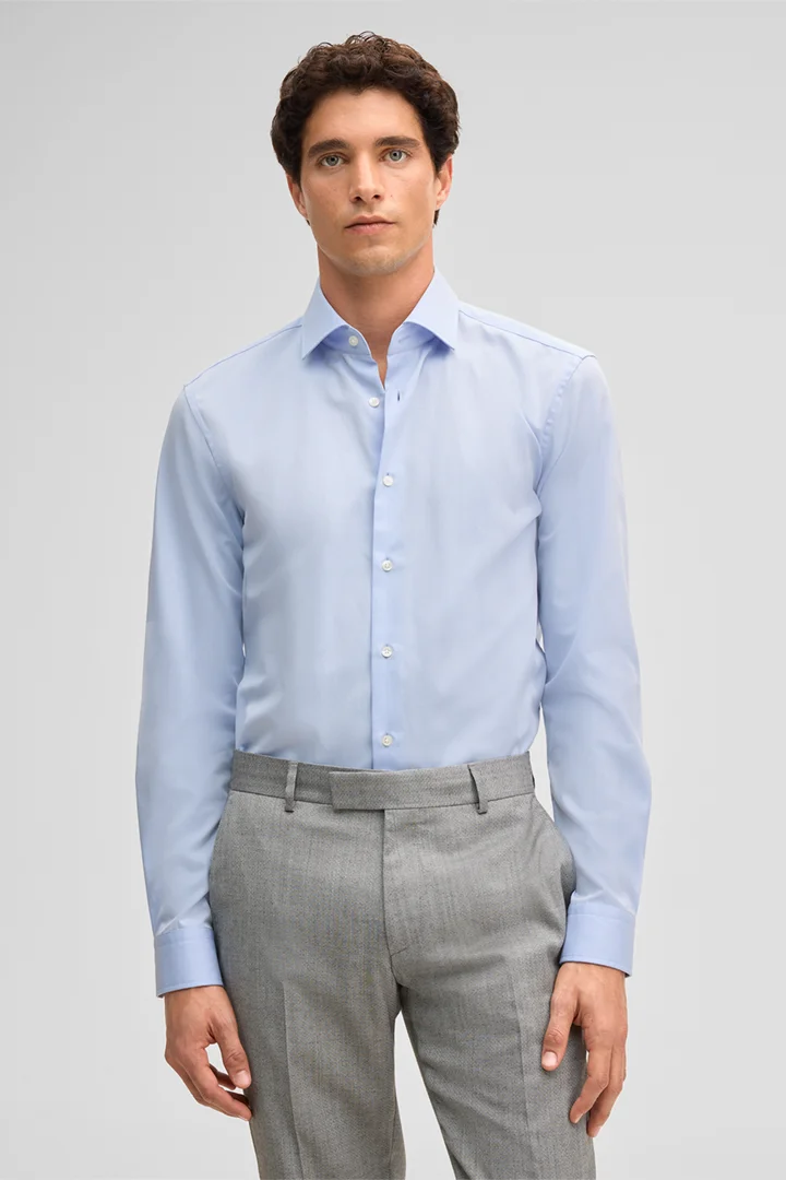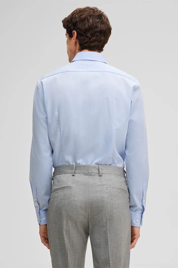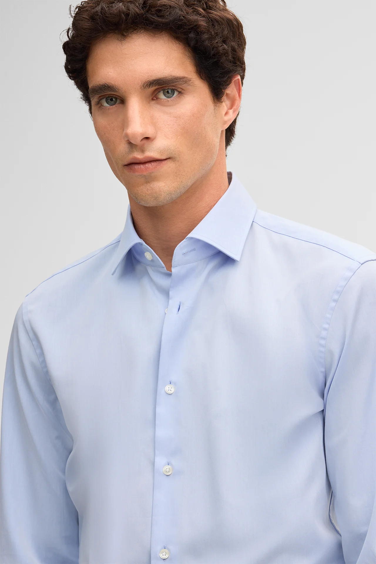 Das pure Baumwoll-Hemd Santos ist ein vielseitiges Business-Essential in klassischer Optik. Ein verstärkter Kentkragen und die glatte Knopfleiste definieren den taillierten SLIM FIT.
