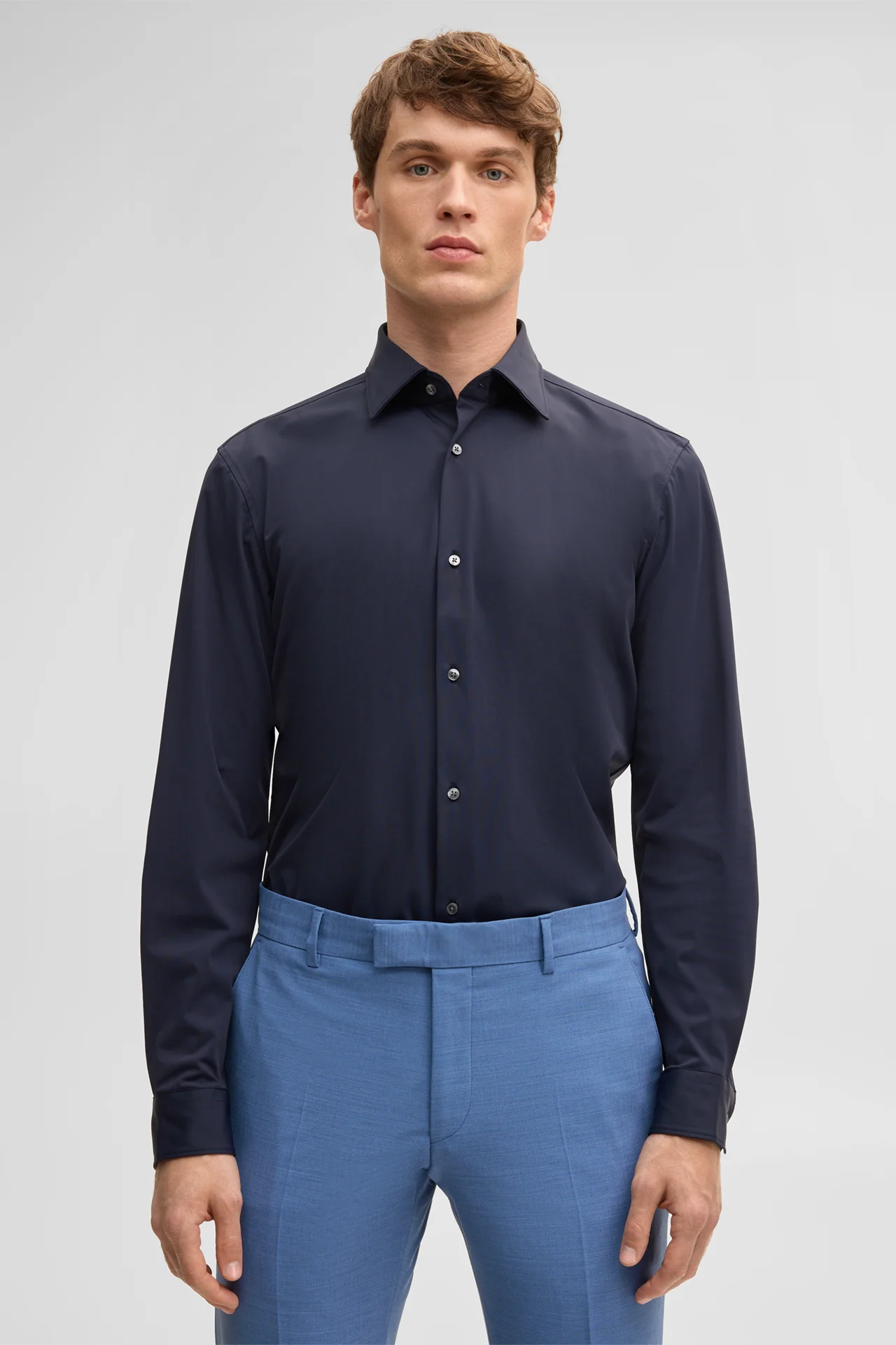 In komfortabler Powerflex-Qualität aus stretchigen Tech-Fasern begeistert das Hemd Sit als Piece für Business-Outfits. Die schmale Passform und der leicht abgerundete Saumabschluss verleihen ein modernes Finish.