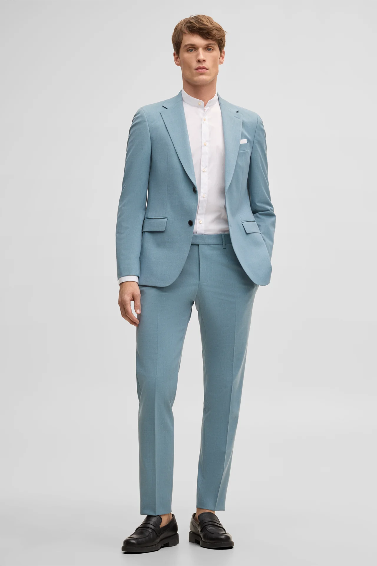 Die Anzughose Kynd eignet sich perfekt für anspruchsvolle Dresscodes. Puren Komfort bietet die leichte Wollmischung. Der verdeckte Verschluss mit versetztem Riegel am Bund sowie klassische Gürtelschlaufen verleihen den stilvollen Charme. Markante Details bieten eine kleine Stecktasche sowie formgebende Bügelfalten.