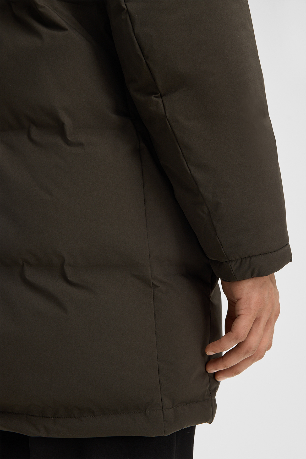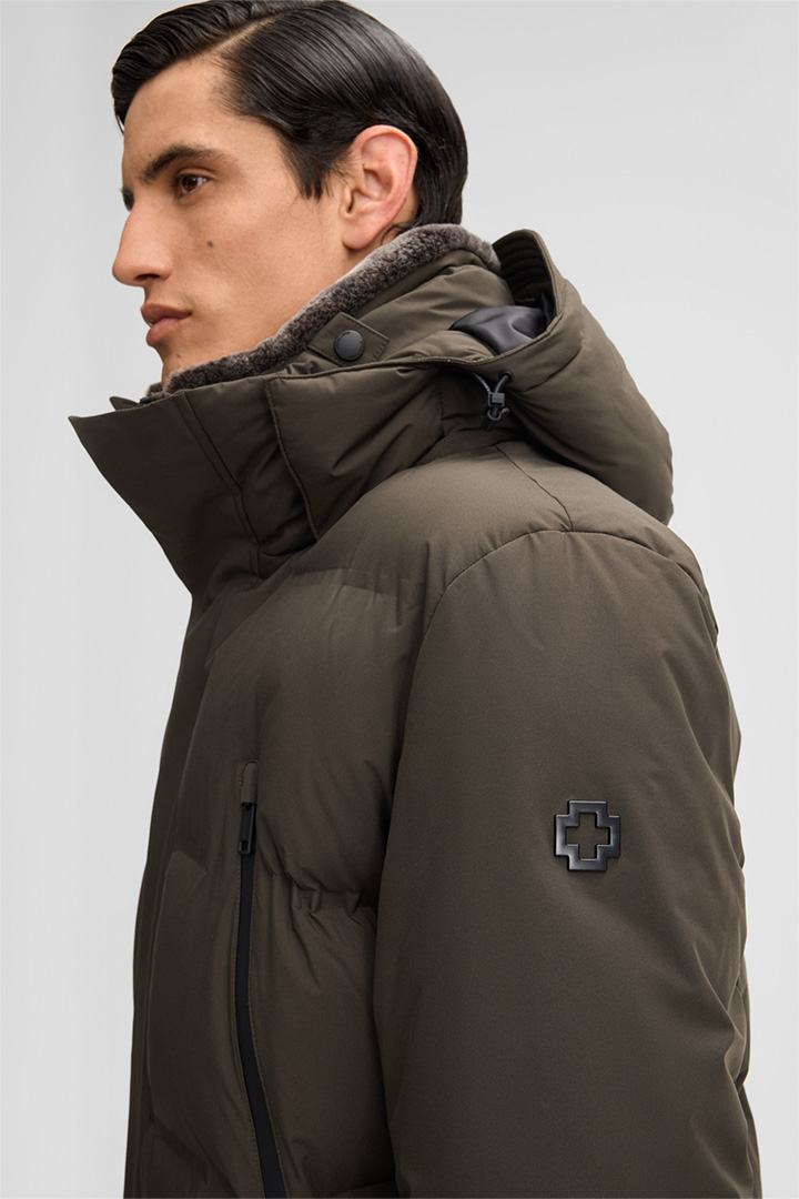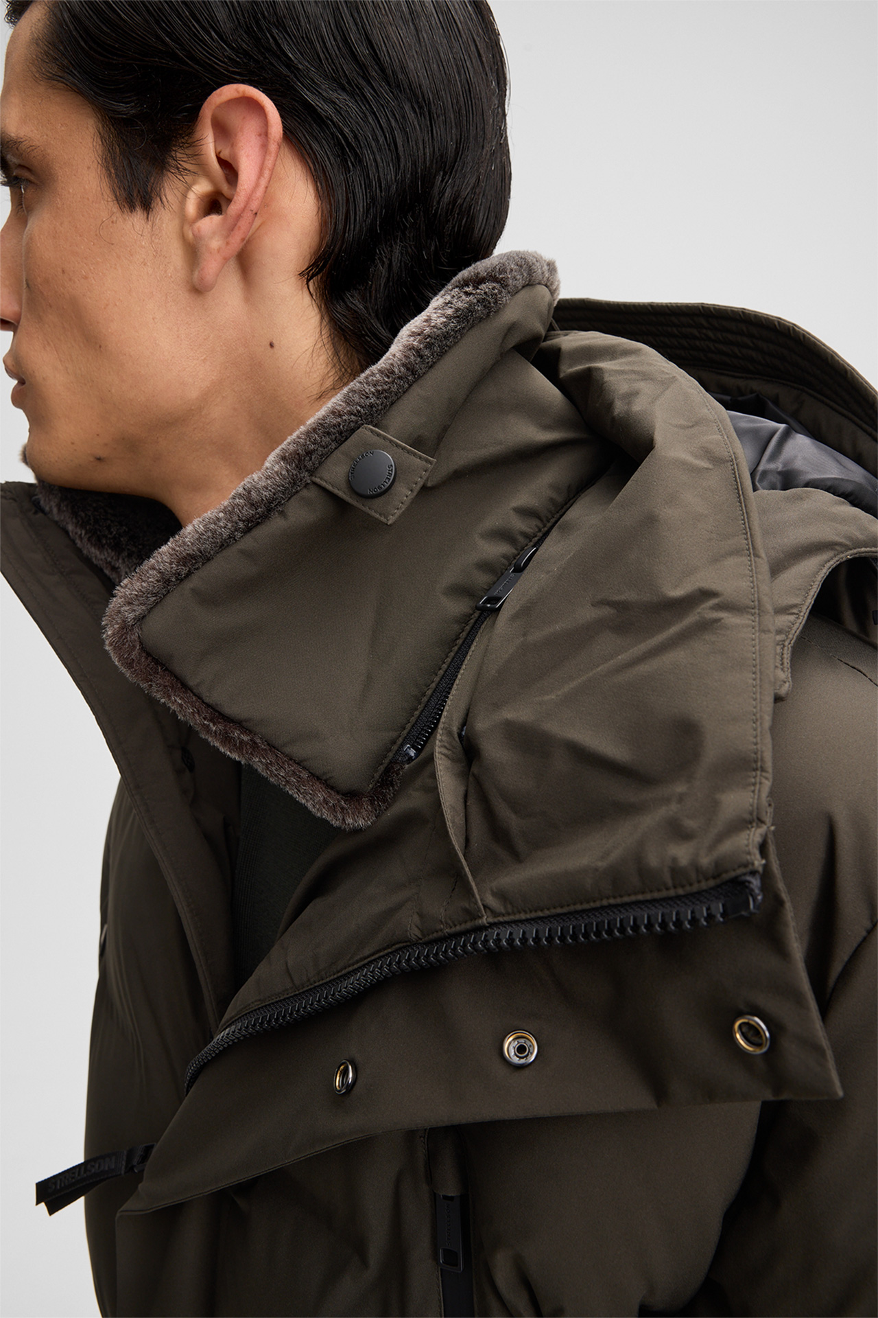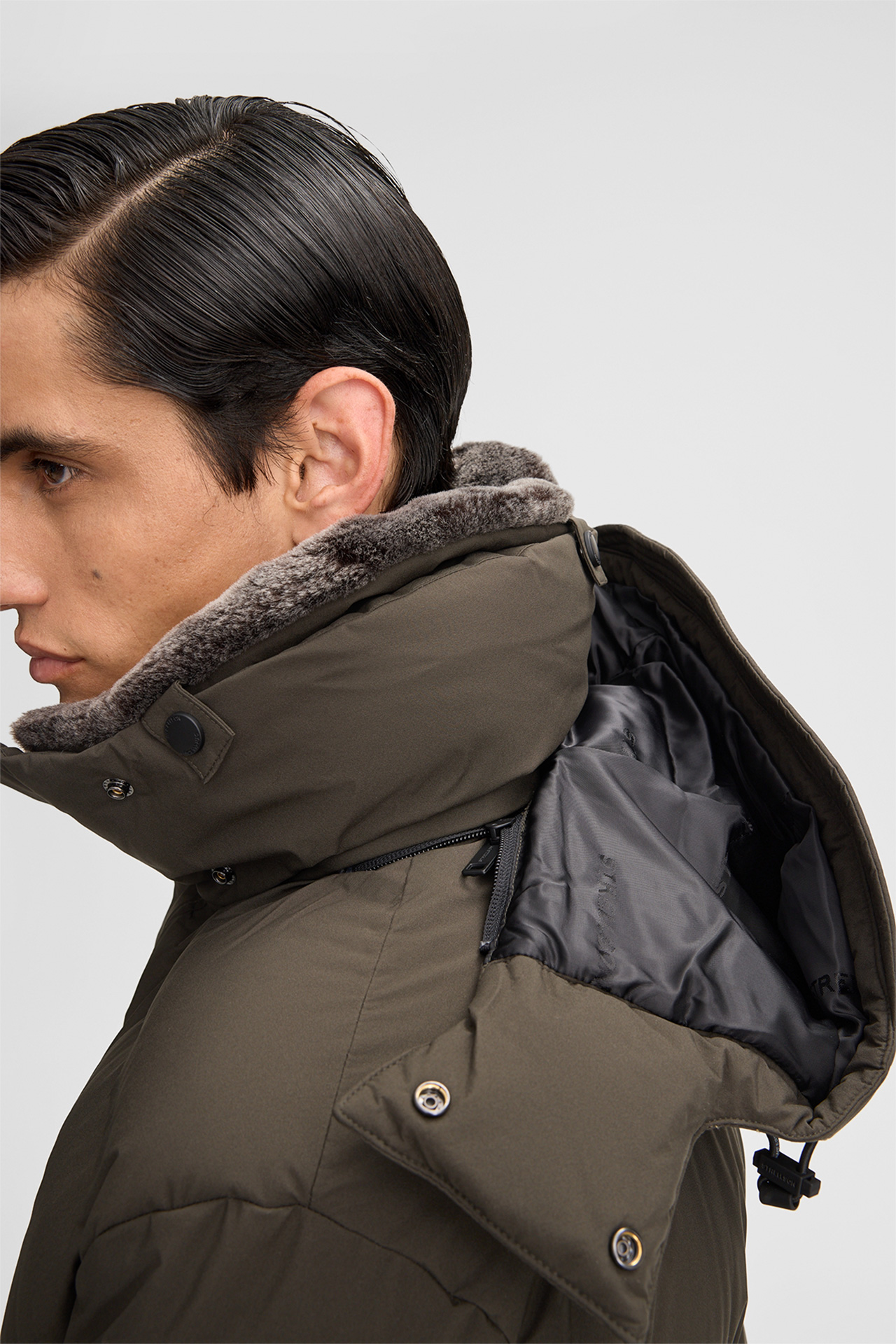 Mit hohem Kragen, Tunnelzugkapuze und verdeckter Verschlussleiste erhält der wattierte Parka Ambience den urbanen Look. Funktionales Upgrade: Zip und Pattentaschen.