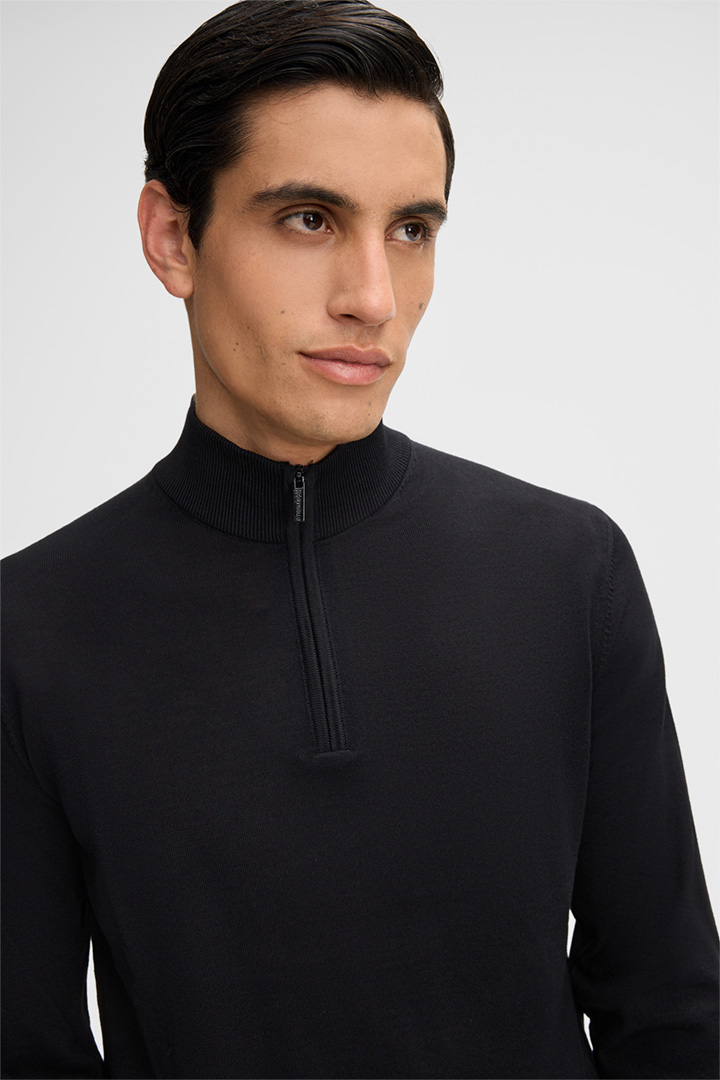 Komfortabler Klassiker: der Pullover Marek mit Troyerkragen. Rippbündchen und Ziernähte ergänzen das Design. Aus reiner Schurwolle.