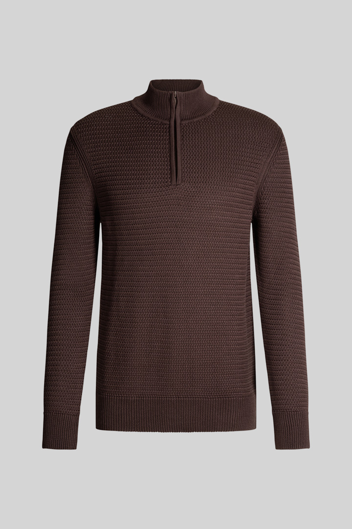 Mit Zip-Stehkragen im Troyer-Design: Der Pullover Adrian im Strukturdesign aus reiner Baumwolle. Rippbündchen ergänzen den Look.