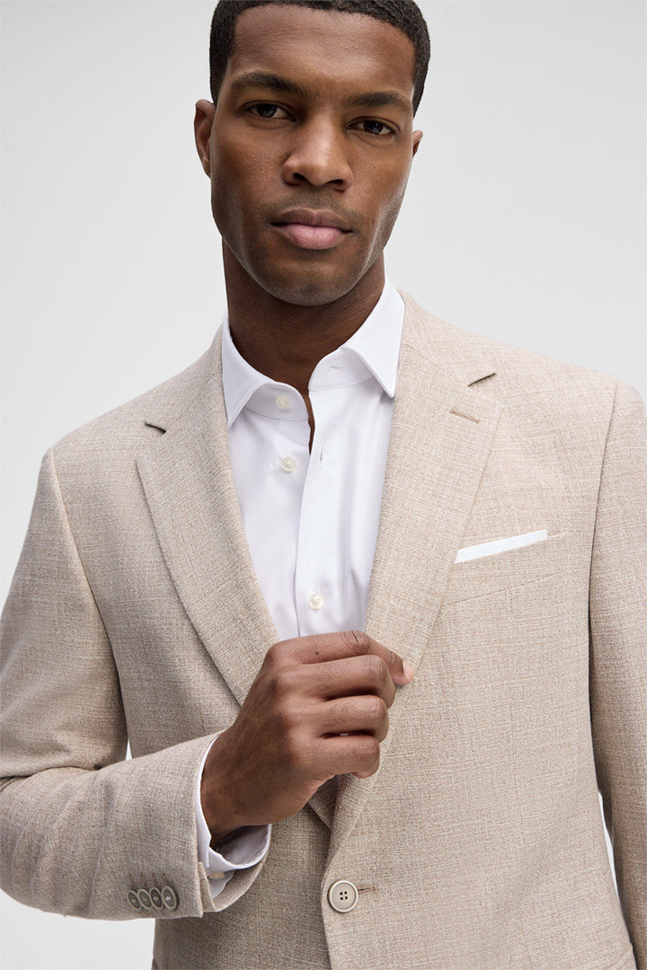 Im melierten Look und aus angenehm leichter Qualität im Baumwoll-Viskose-Mix mit Wolle passt das Sakko Alzer als vielseitiger Begleiter in jeder Saison – für formelle Anlässe, Business und semi-formale Events. Akzente schenken Pattentaschen, tonale Knöpfe an den Ärmelabschlüssen und das Revers. Bewegungsschlitze runden das Design ab.