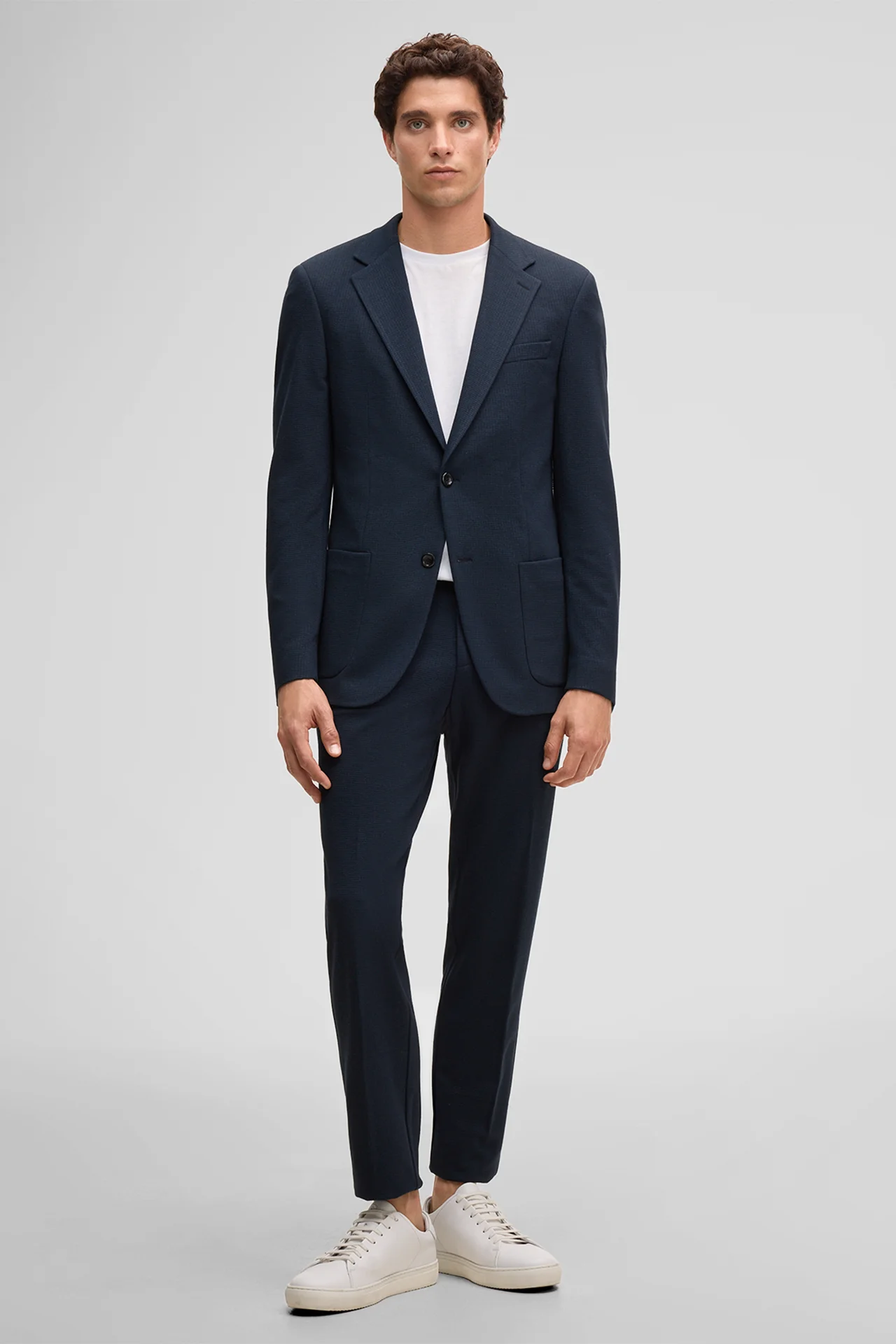 In stilvoller Optik aus strukturiertem Viskosemix begeistert das Sakko Arndt. Der markante Look erhält durch den klassischen Reverskragen, aufgesetzte Taschen und den Zweiknopfverschluss den Tailoring Twist. Für entspannten Komfort sorgen doppelte Bewegungsschlitze.