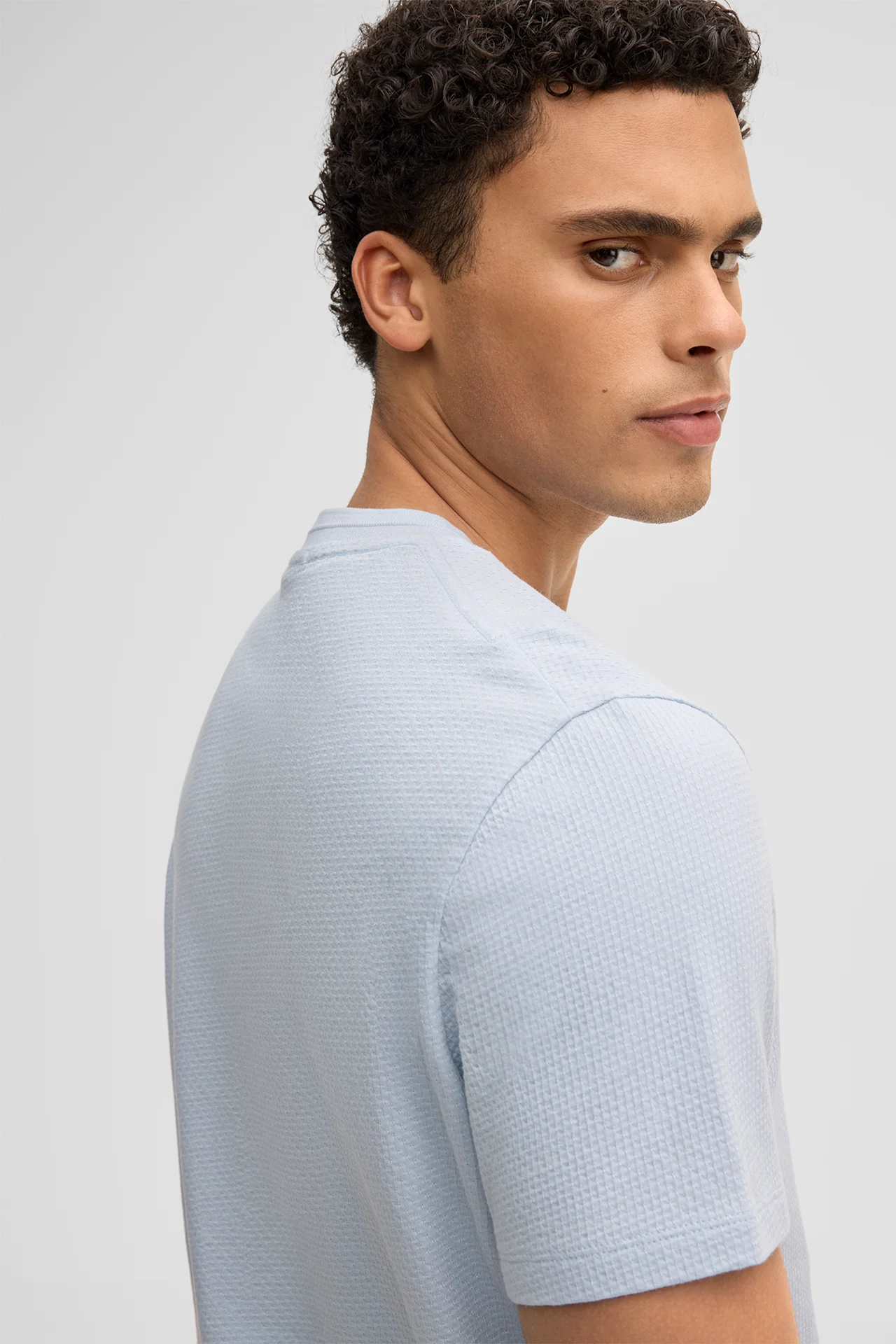 Begeistert als Comfort-Piece: das T-Shirt Fisher in Piqué-Qualität mit Rundhalsausschnitt und doppelt vernähten Abschlüssen. Aus reiner Bio-Baumwolle.