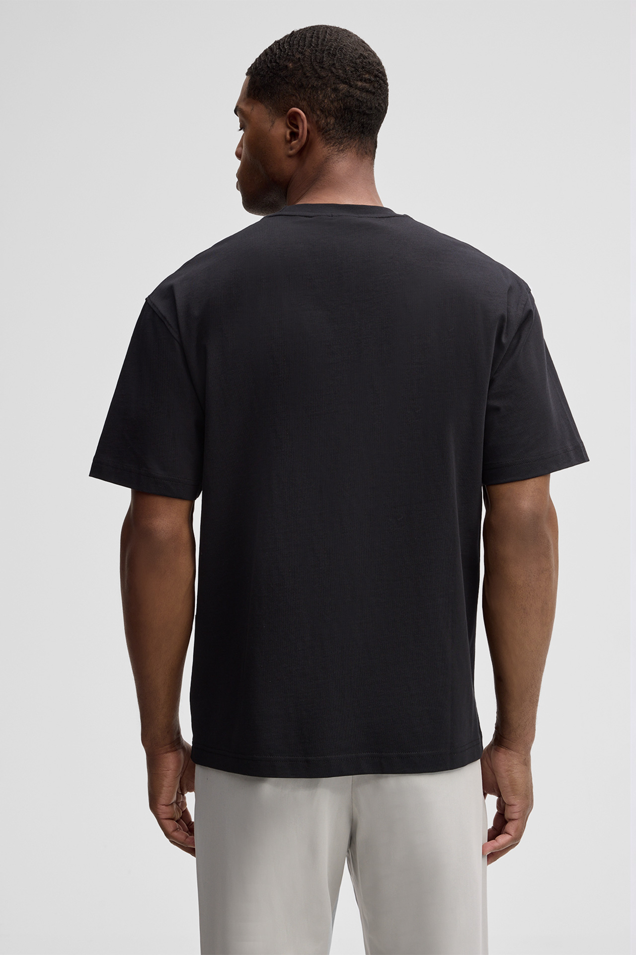 Das Model trägt die Größe M bei einer Körpergröße von 186 cm, einem Brustumfang von 98 cm und einem Hüftumfang von 98 cm.