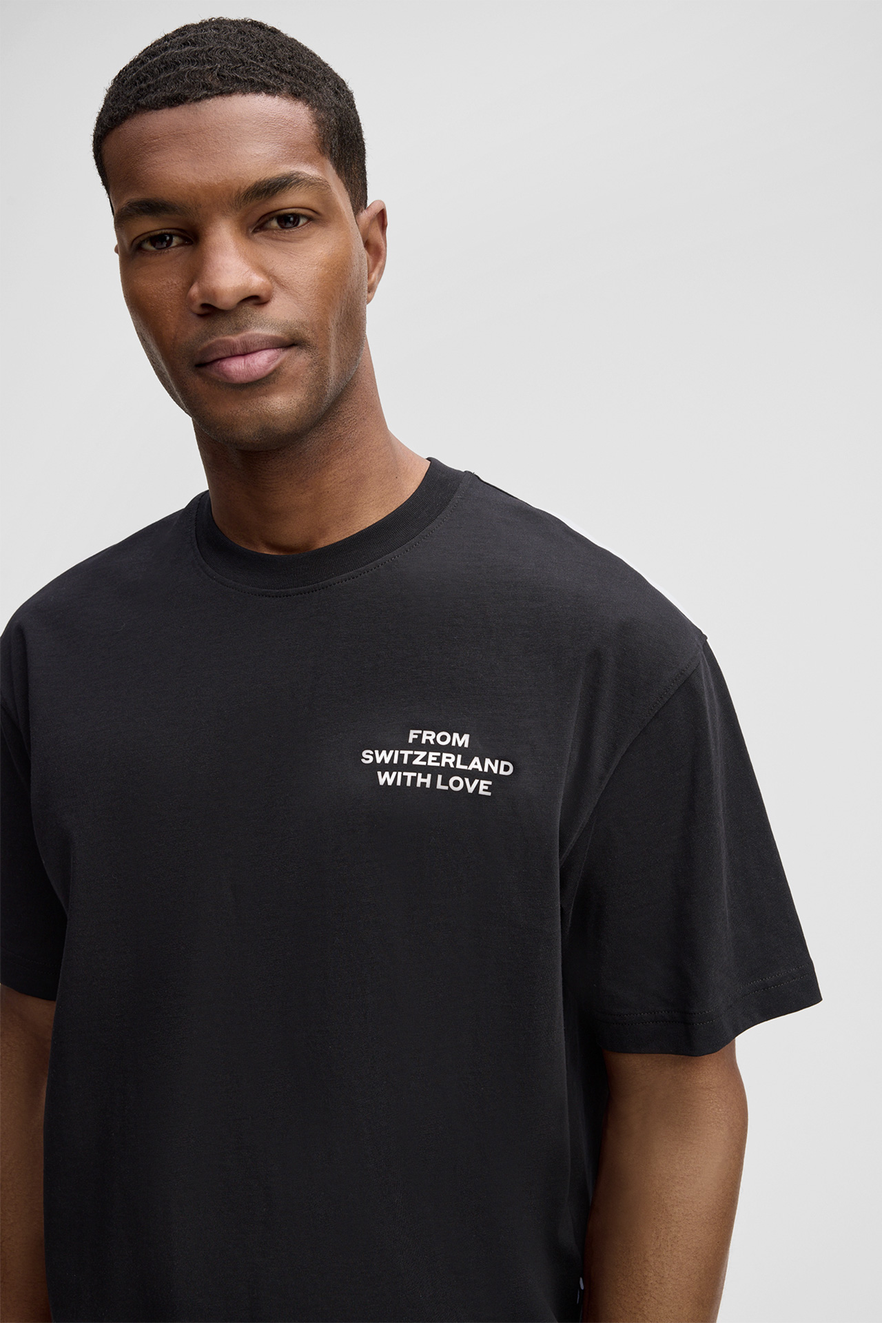 • Logo-Design-Schriftzug auf Brusthöhe