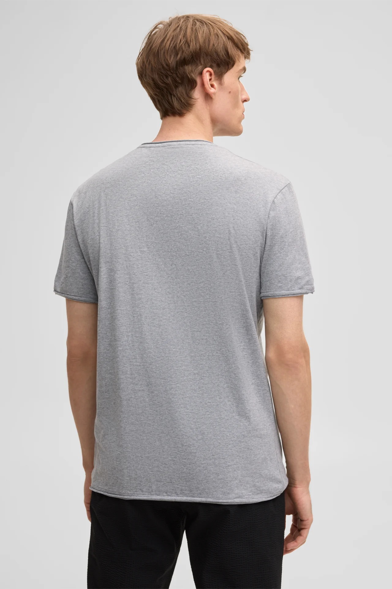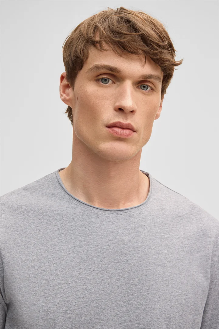 Kombinationsstarker Allrounder: T-Shirt Tyler aus reiner Baumwolle mit Rundhalsausschnitt. Offene Kanten verleihen edgy Flair.