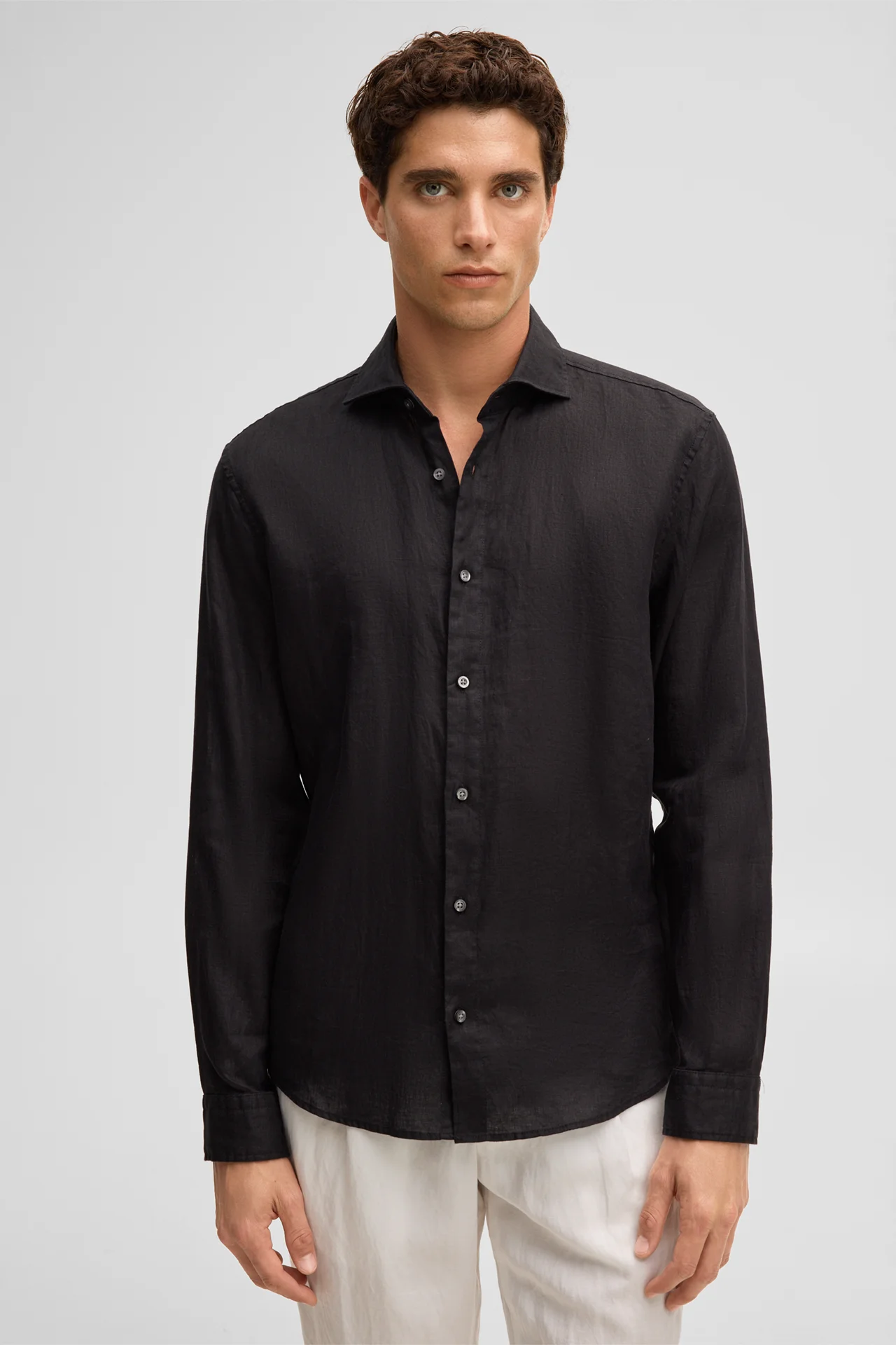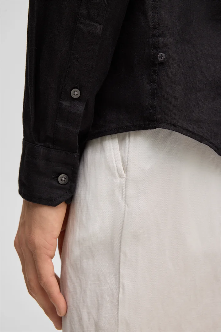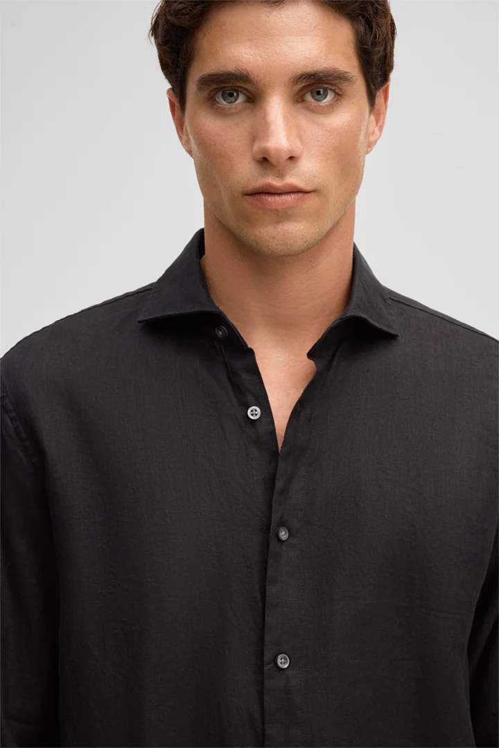 Confectionnée en pur lin, la chemise Ceasar séduit par son confort et sa légèreté, ce qui la rend idéale pour les journées chaudes. Son design se distingue par son col requin moderne et sa patte de boutonnage sur toute la longueur. Les poignets classiques et l'ourlet arrondi lui confèrent une finition harmonieuse.