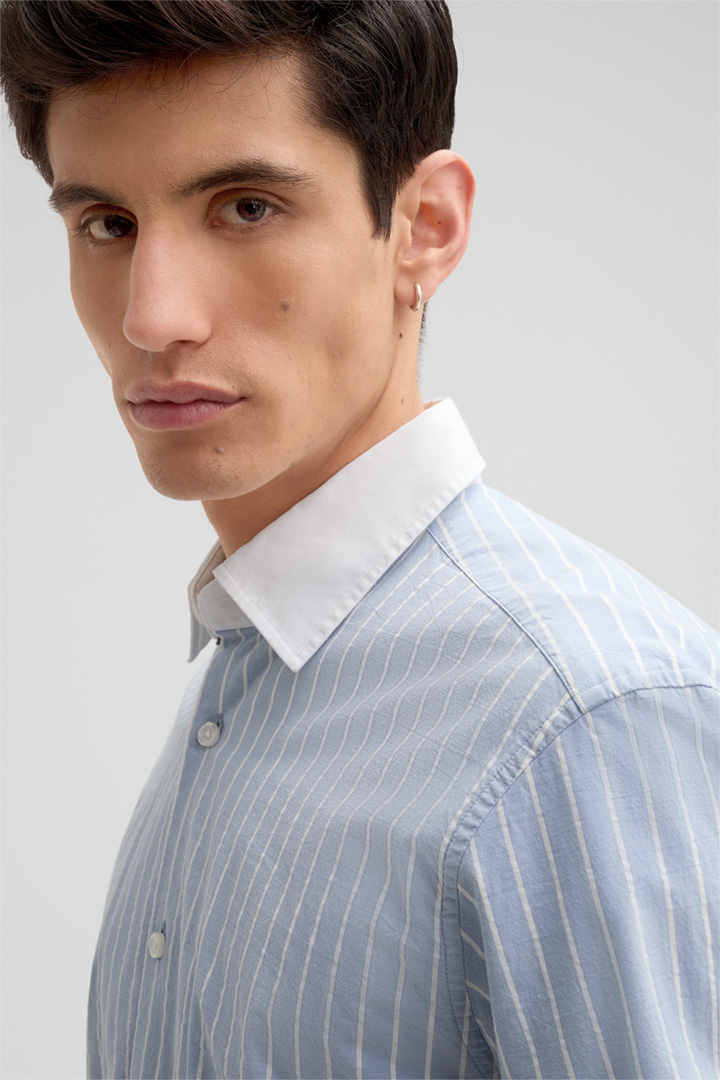 Chemise en coton Casyn, bleu clair à rayures