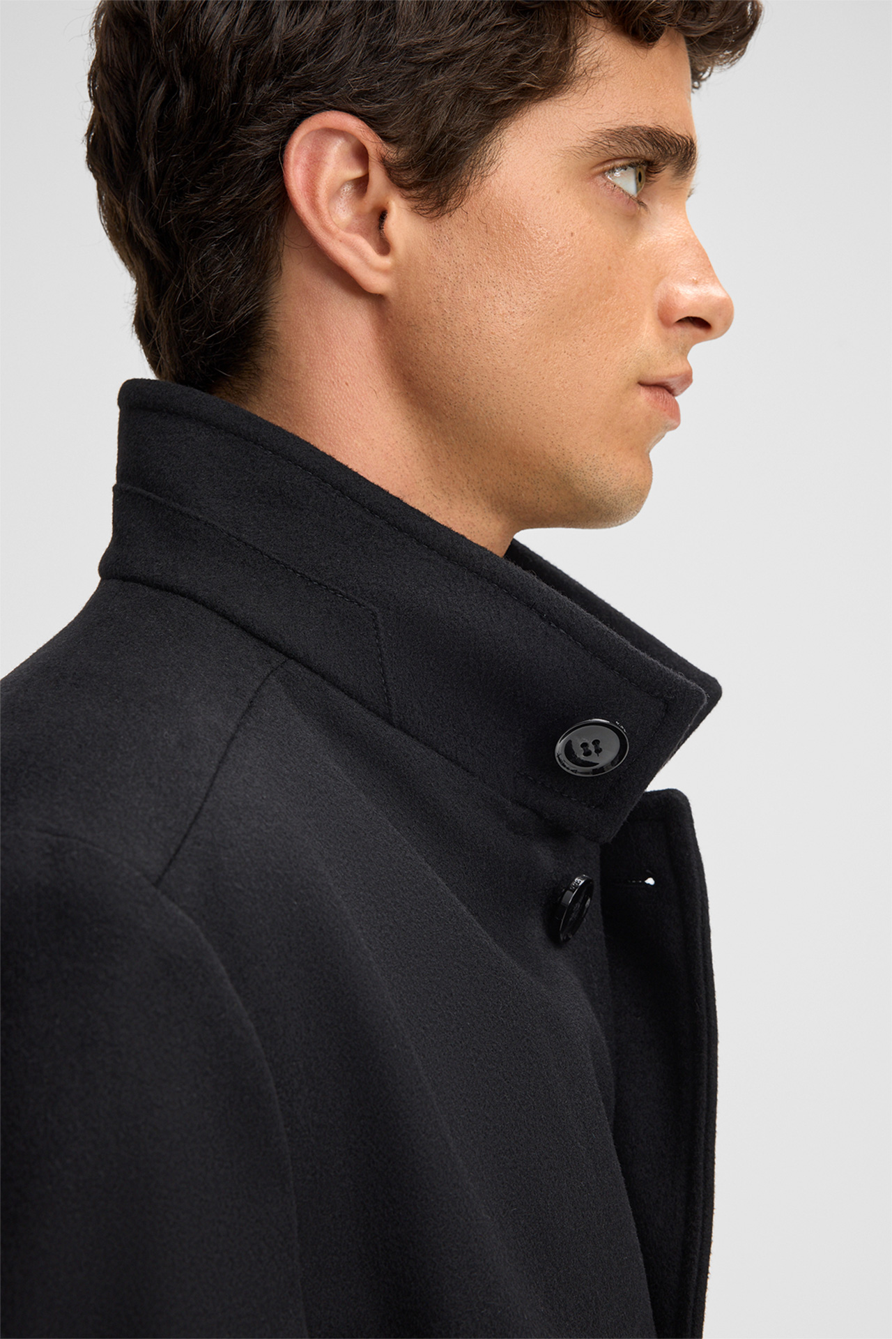 Finchley : manteau en laine mélangée à l’allure élégante. Avec col montant, fermeture boutonnée et poches passepoilées.