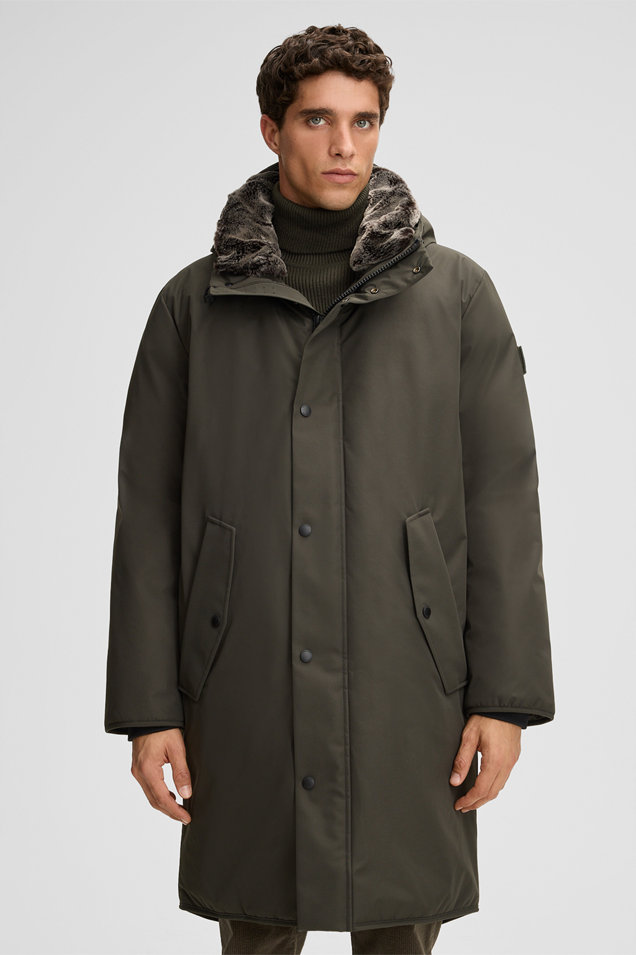The Archive Piece : la parka S.C. en softshell dotée d’un zip à double curseur, d’une capuche et d’un col amovible en fourrure synthétique. Les deux poches et la finition imperméable apportent une touche fonctionnelle.