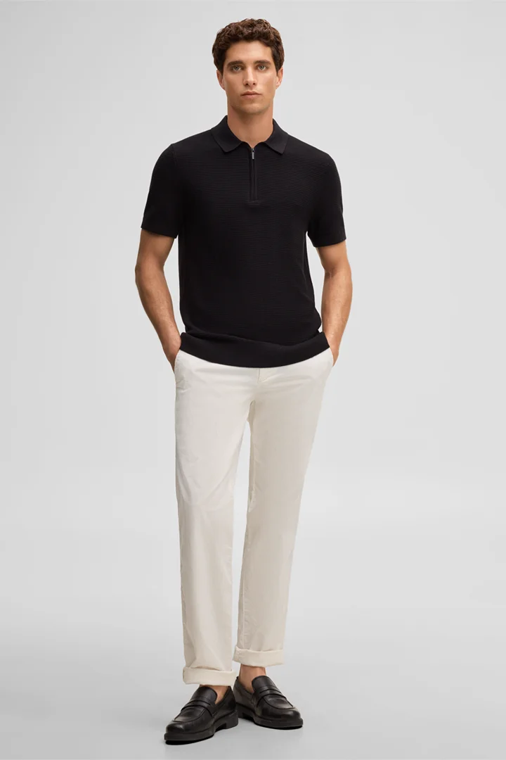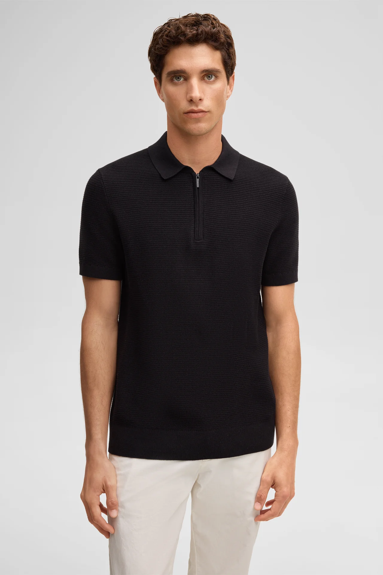 Le polo Robas en coton mélangé à une touche de soie séduit par son design structuré qui en fait un modèle polyvalent élégant, idéal pour créer des tenues distinctives. La fermeture zippée et les bordures côtelées apportent une finition décontractée.
