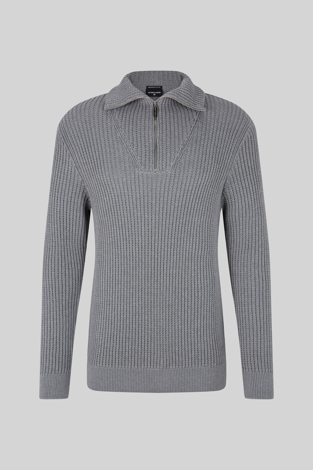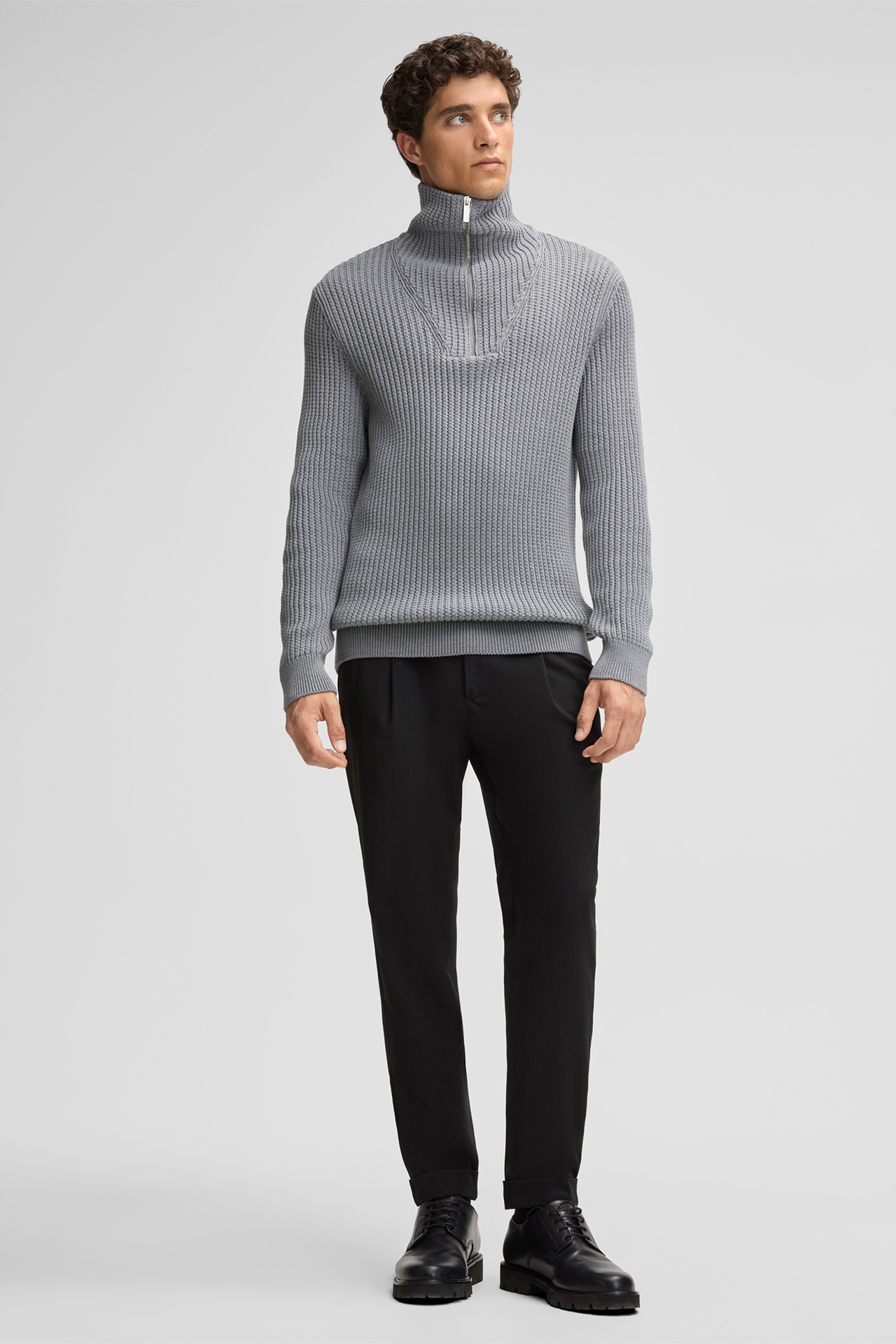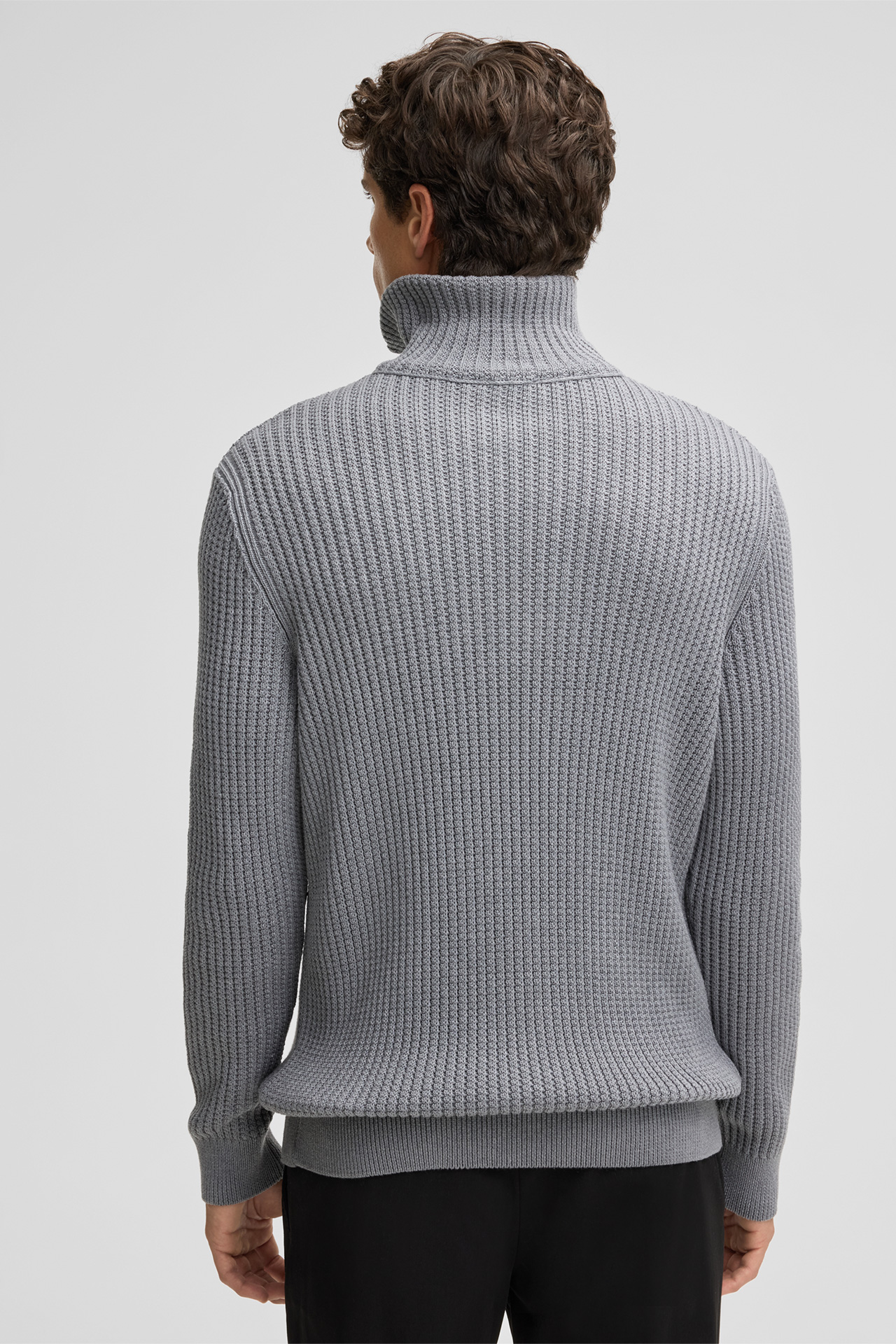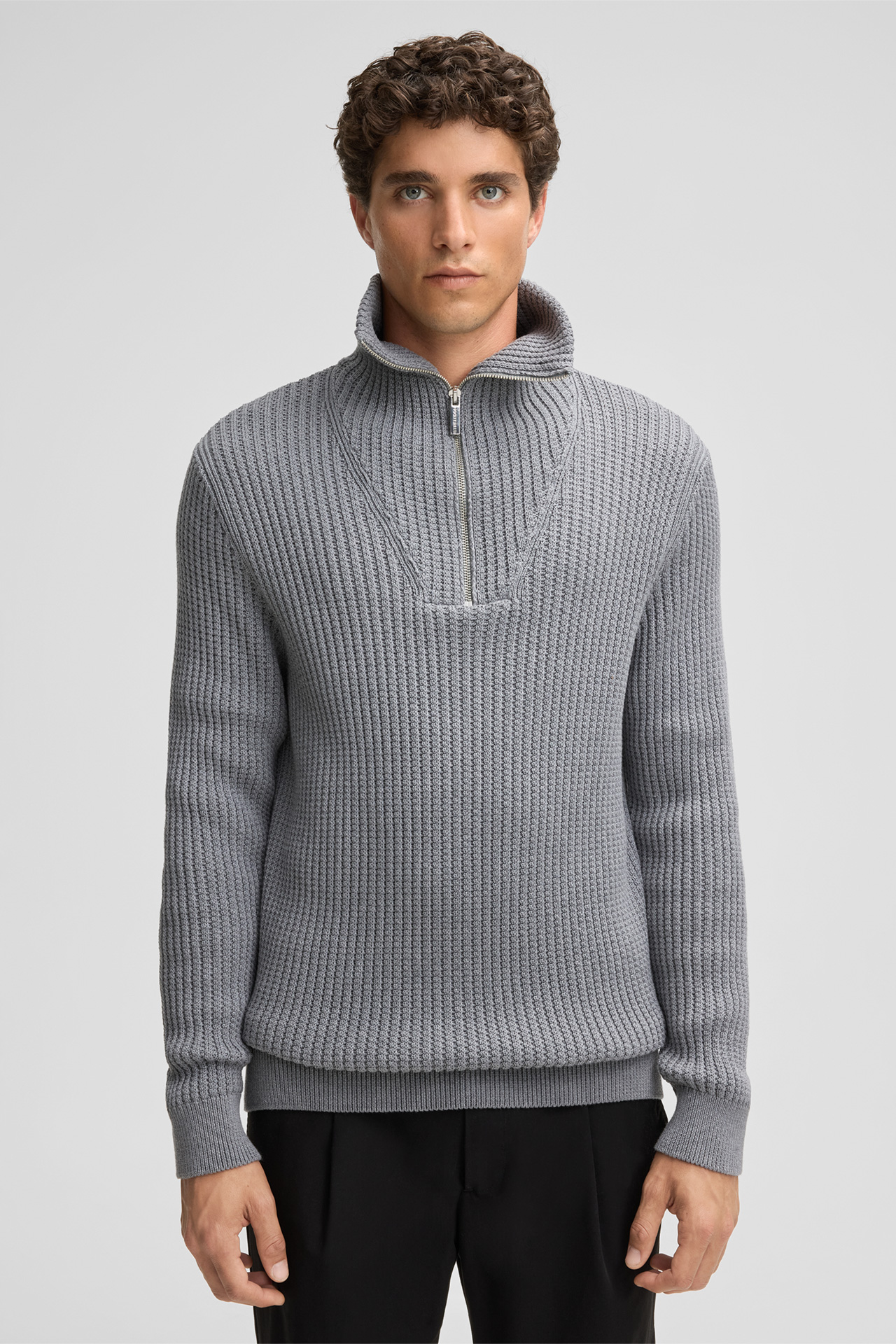 Le pull camionneur Artem, un modèle polyvalent avec une touche décontractée : elle présente un col doté d’un zip à logo, une structure moderne, des bordures côtelées et une étiquette logo appliquée. En pur coton.