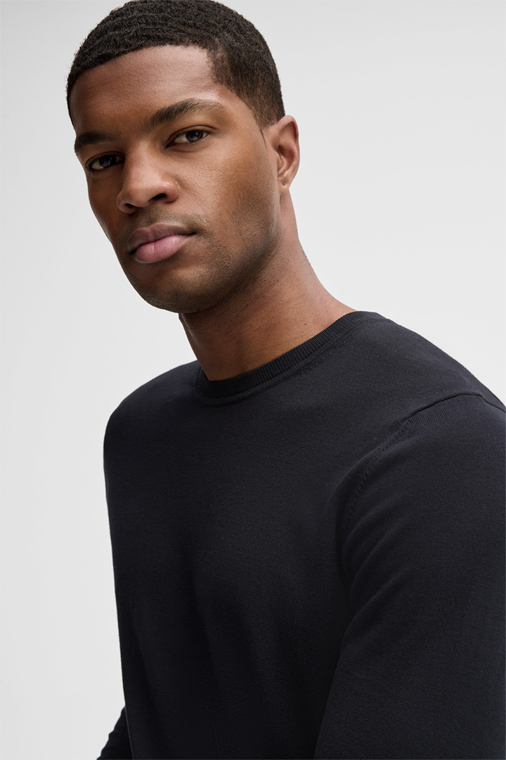 Un modèle confortable : le pull-over Vincent en pur coton biologique. Des coutures décoratives raffinées et des ourlets côtelés complètent ce modèle décontracté.