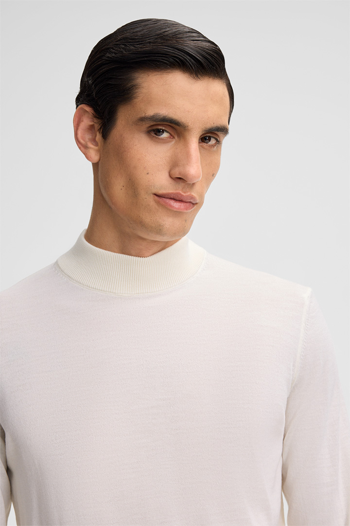 Un modèle polyvalent tendance : le pull-over Marek à col montant et bordures côtelées. Douce laine vierge avec fines coutures décoratives.