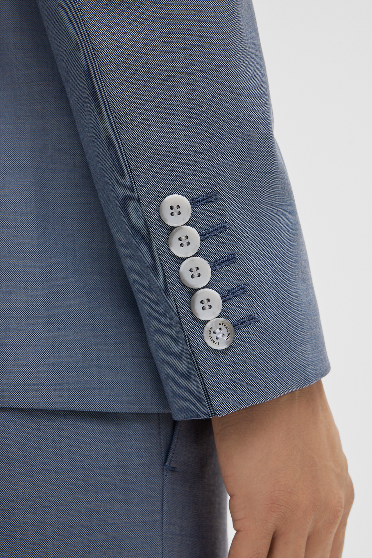 • manchetten met siersplit en 5 kissing buttons