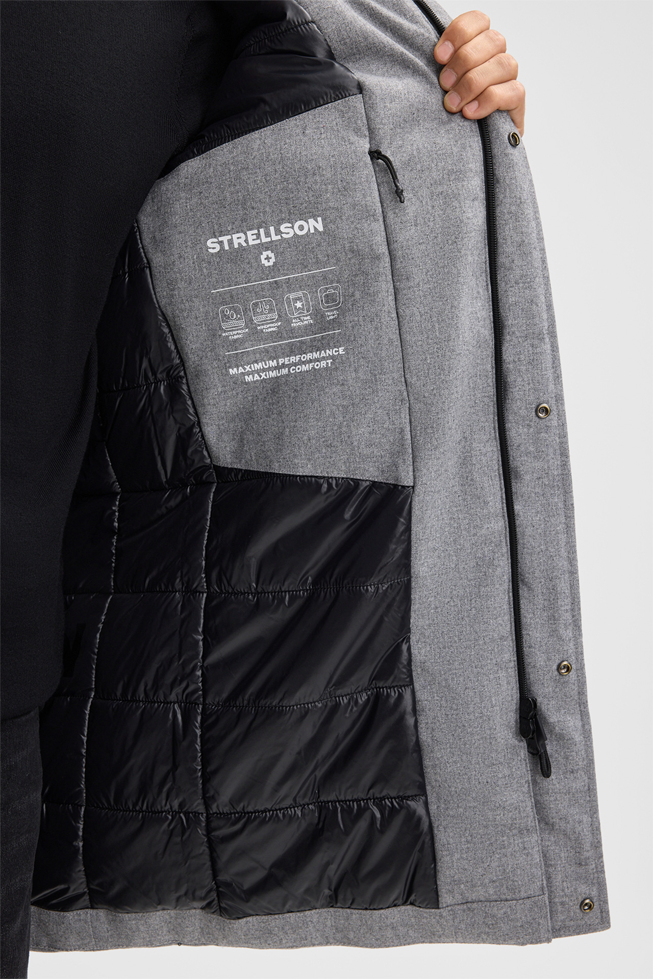 Deze stijlvolle parka, Flex-Overjacket, is voorzien van een opstaande kraag, een blinde sluiting en steekzakken opzij. Met details van imitatiebont langs de kraag. Van een wolblend met lichte wattering.