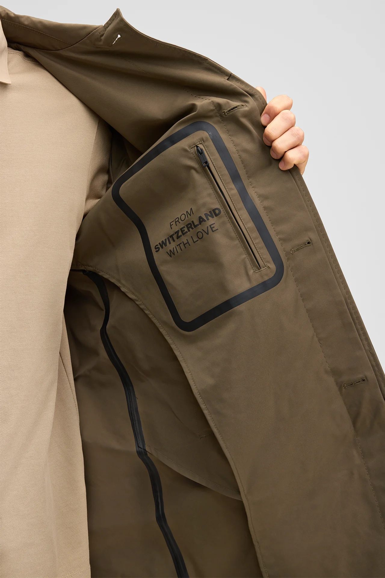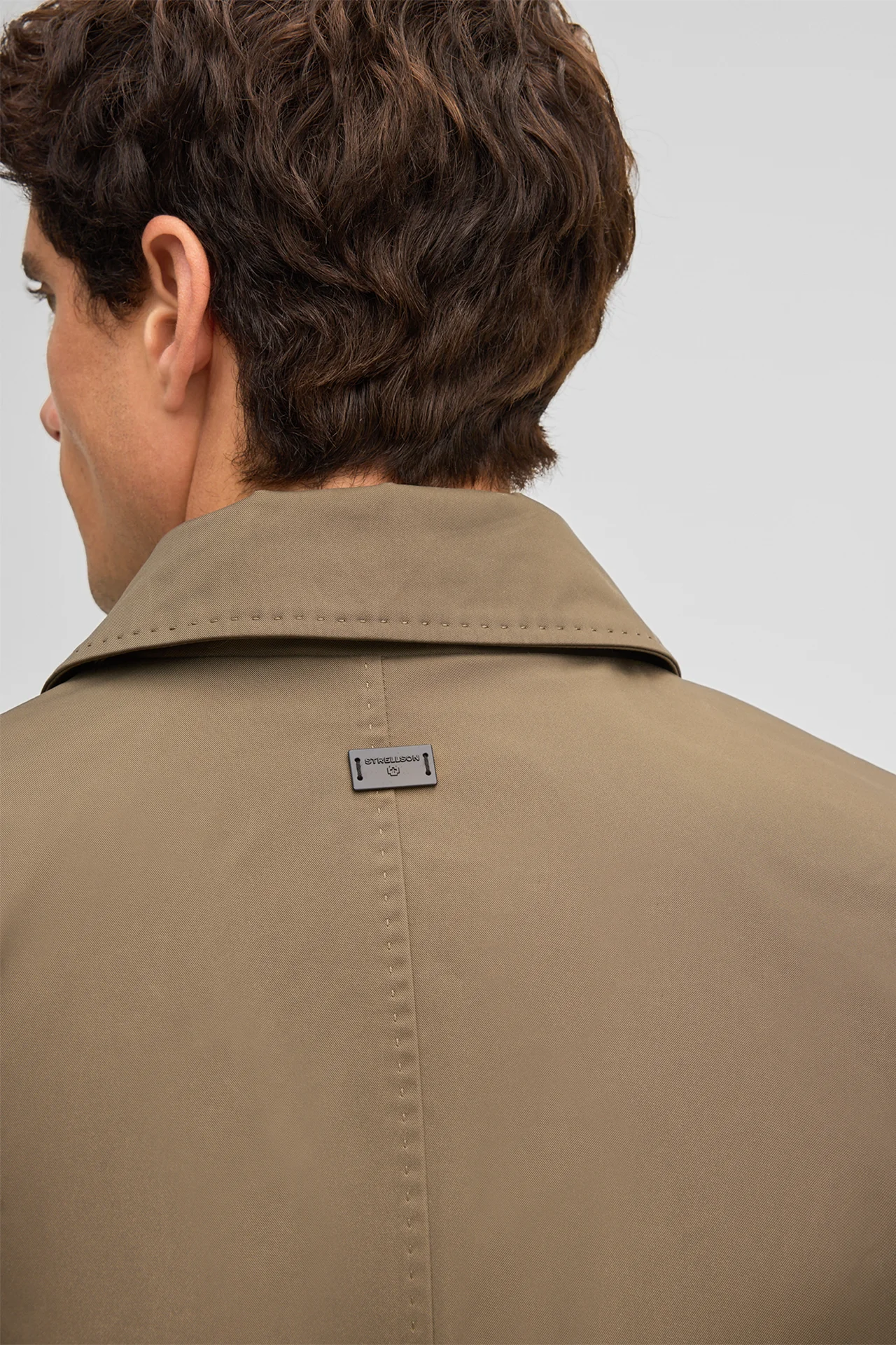 De trenchcoat Barletta overtuigt met zijn strakke ontwerp met omslagkraag en verborgen knopenlijst als allrounder voor vrije tijd en zaken. De mouwuiteinden met knoopsluitingen en steekzakken aan de zijkant, aangevuld met ton-sur-ton AMF-stitching, zorgen voor een klassiek accent. De bewegingssplit zorgt voor een comfortabele afwerking.
