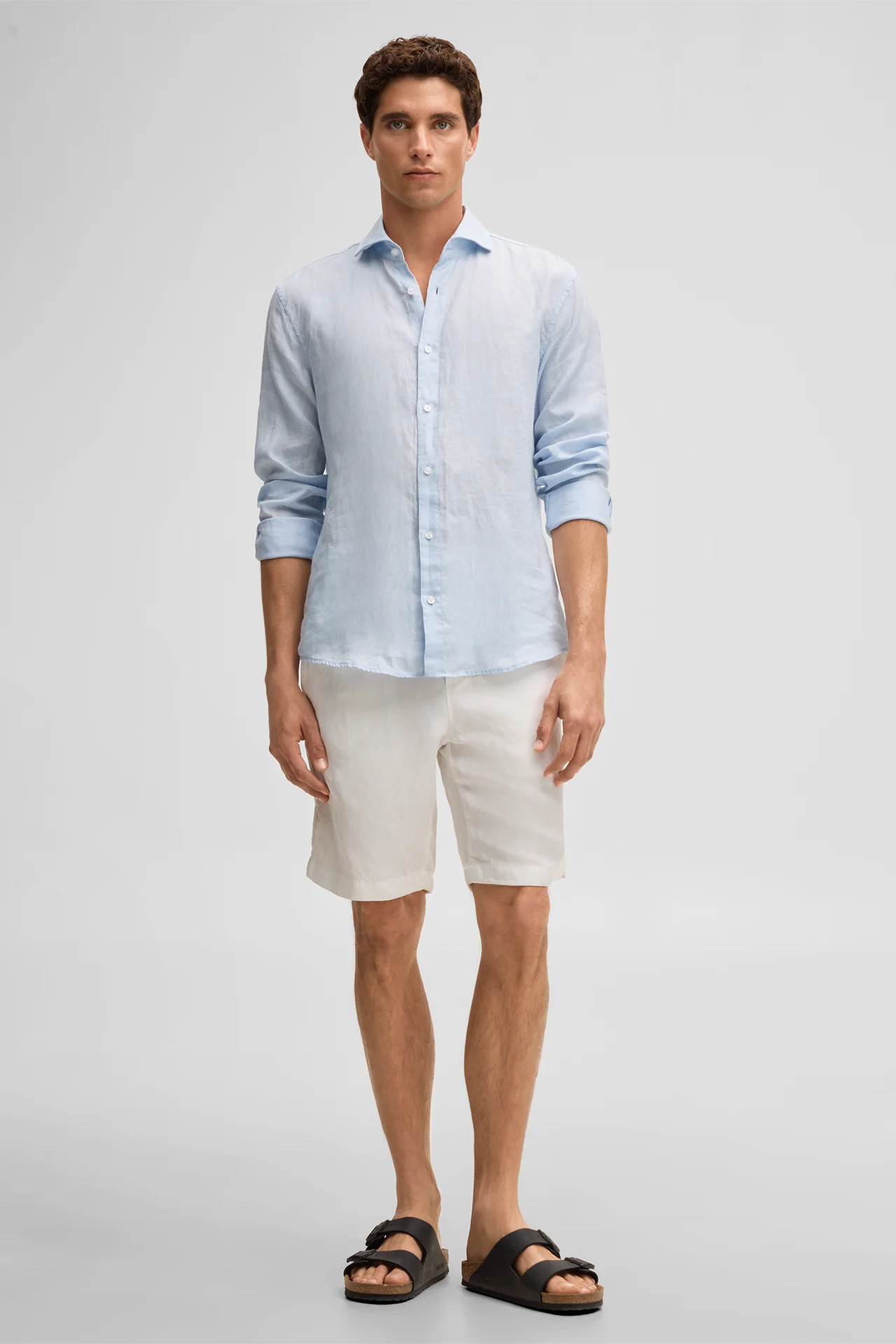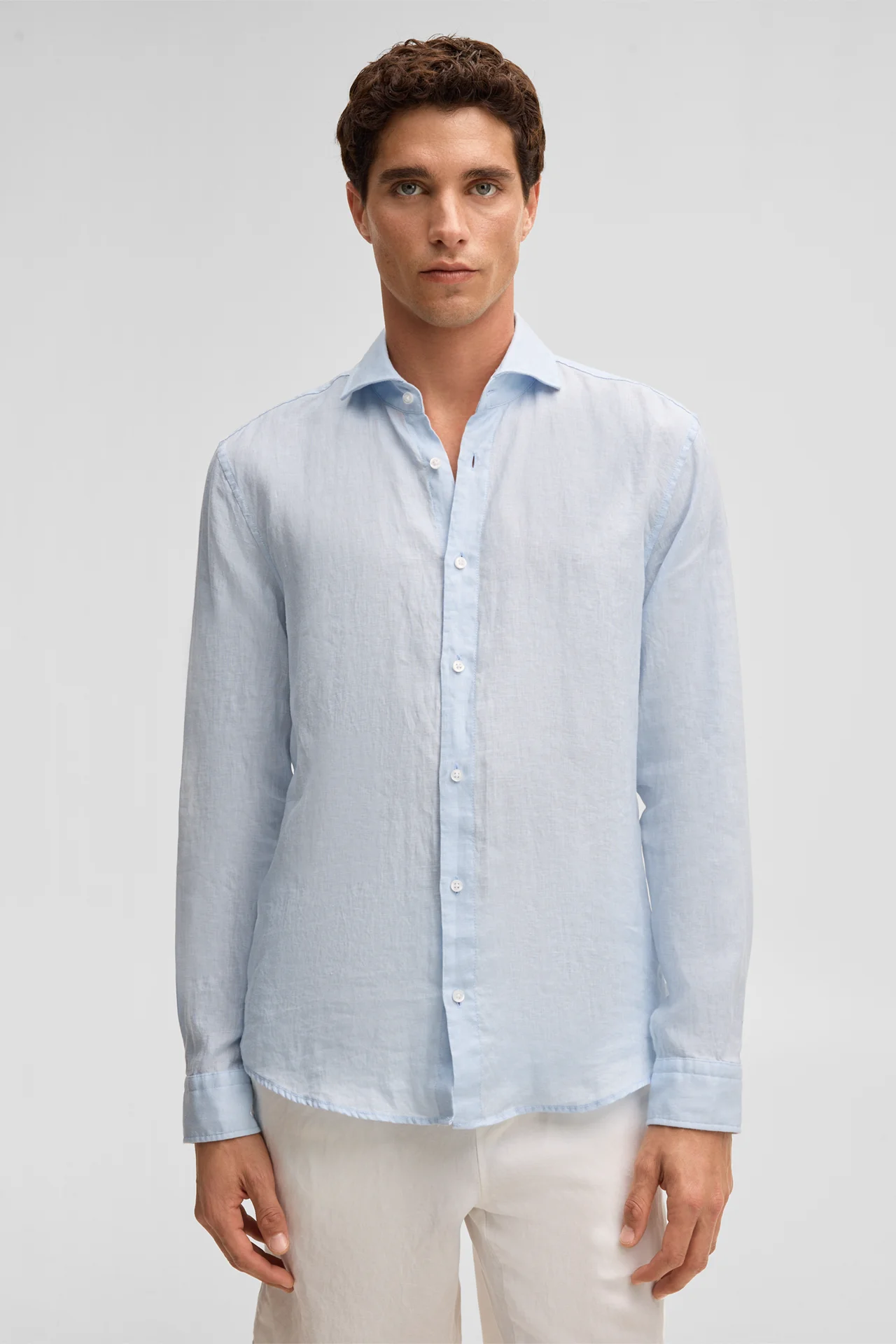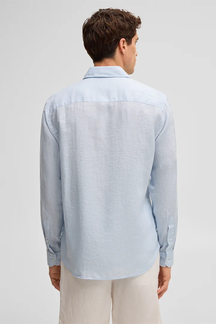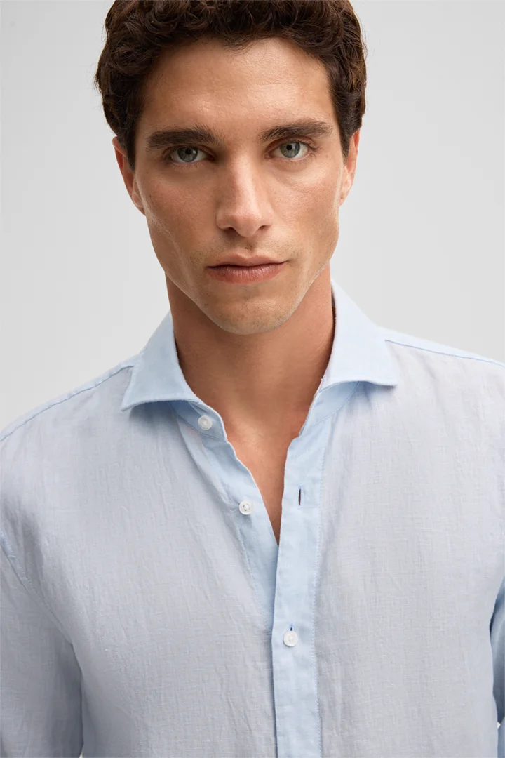 Het Ceasar-overhemd is gemaakt van puur linnen en overtuigt door zijn aangenaam lichte draagcomfort, waardoor het perfect geschikt is voor warmere dagen. Het ontwerp wordt gekenmerkt door de moderne haaienkraag en de doorlopende knopenlijst. Klassieke manchetten en de afgeronde zoom zorgen voor een harmonieuze afwerking.