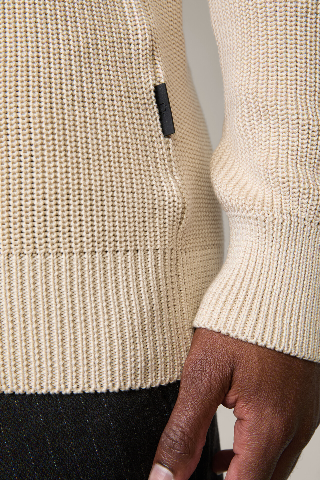 Deze schipperstrui is ribgebreid van zuiver biologisch katoen en voorzien van een blinde rits en bijpassende logodetails. De ribboorden bieden een comfortabele afwerking.