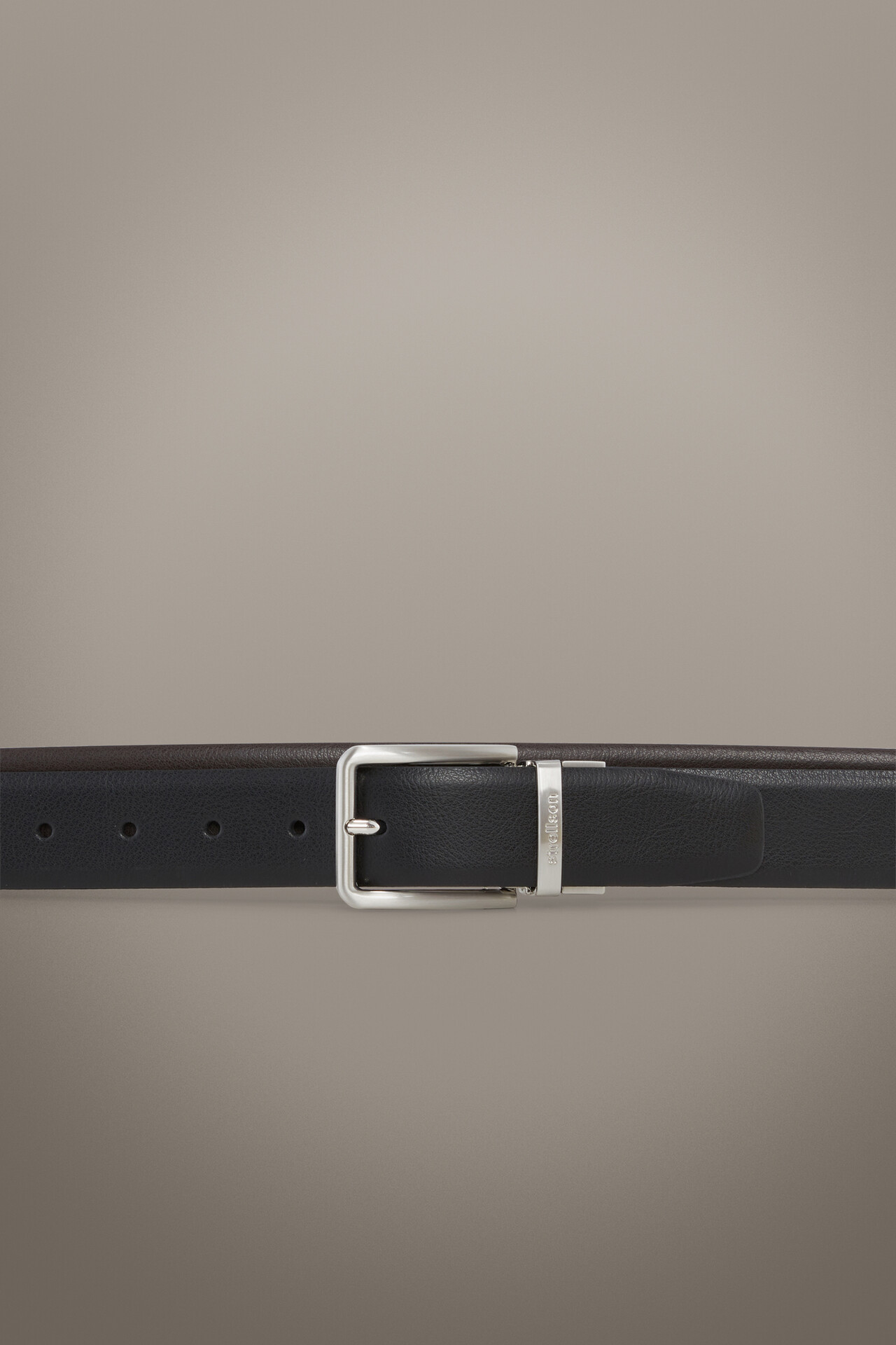 Das fein genarbte Leder prägt das Design des klassischen Gürtels. In Kombination mit Dornschließe und glänzender Metallic-Schlaufe entsteht ein luxuriöses Accessoire.