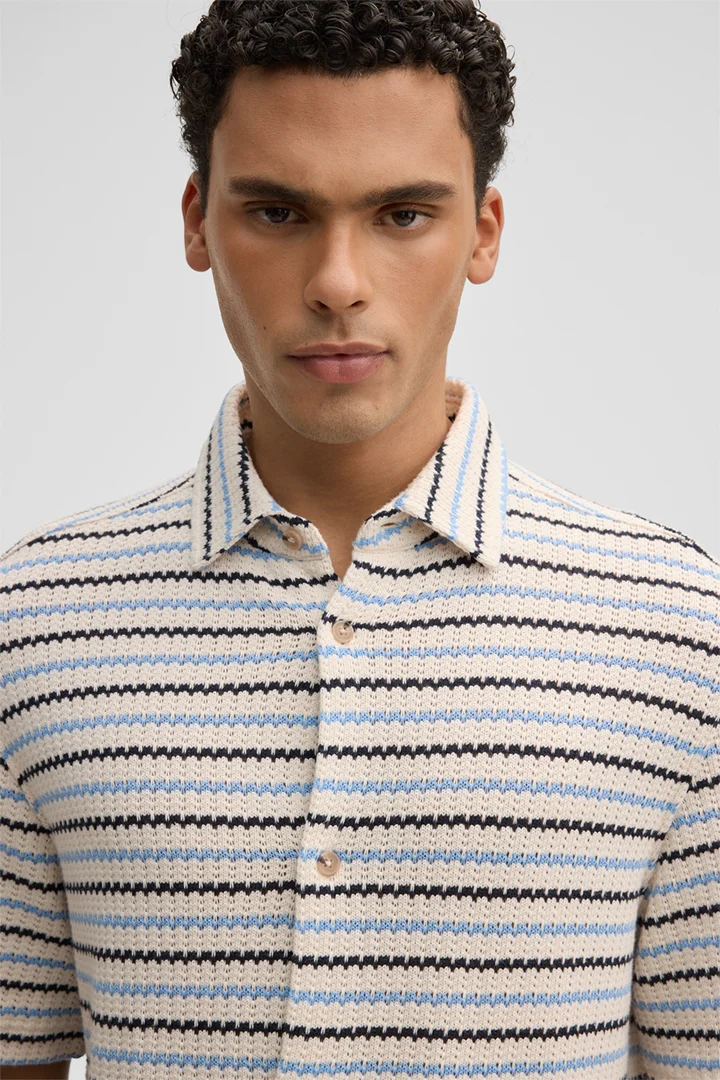 Kurzarm-Hemd Colin, offwhite/blau gestreift