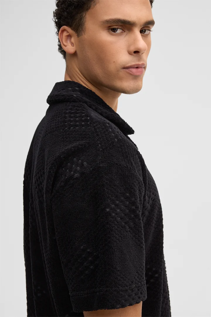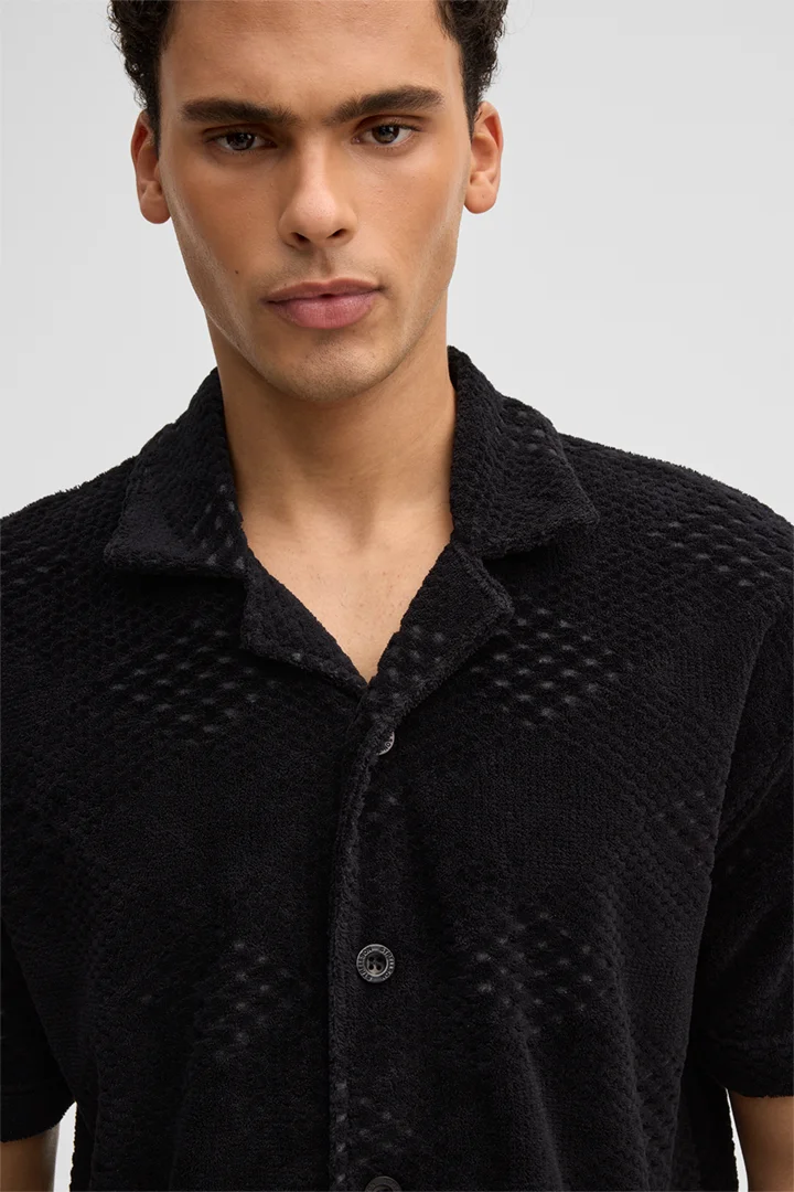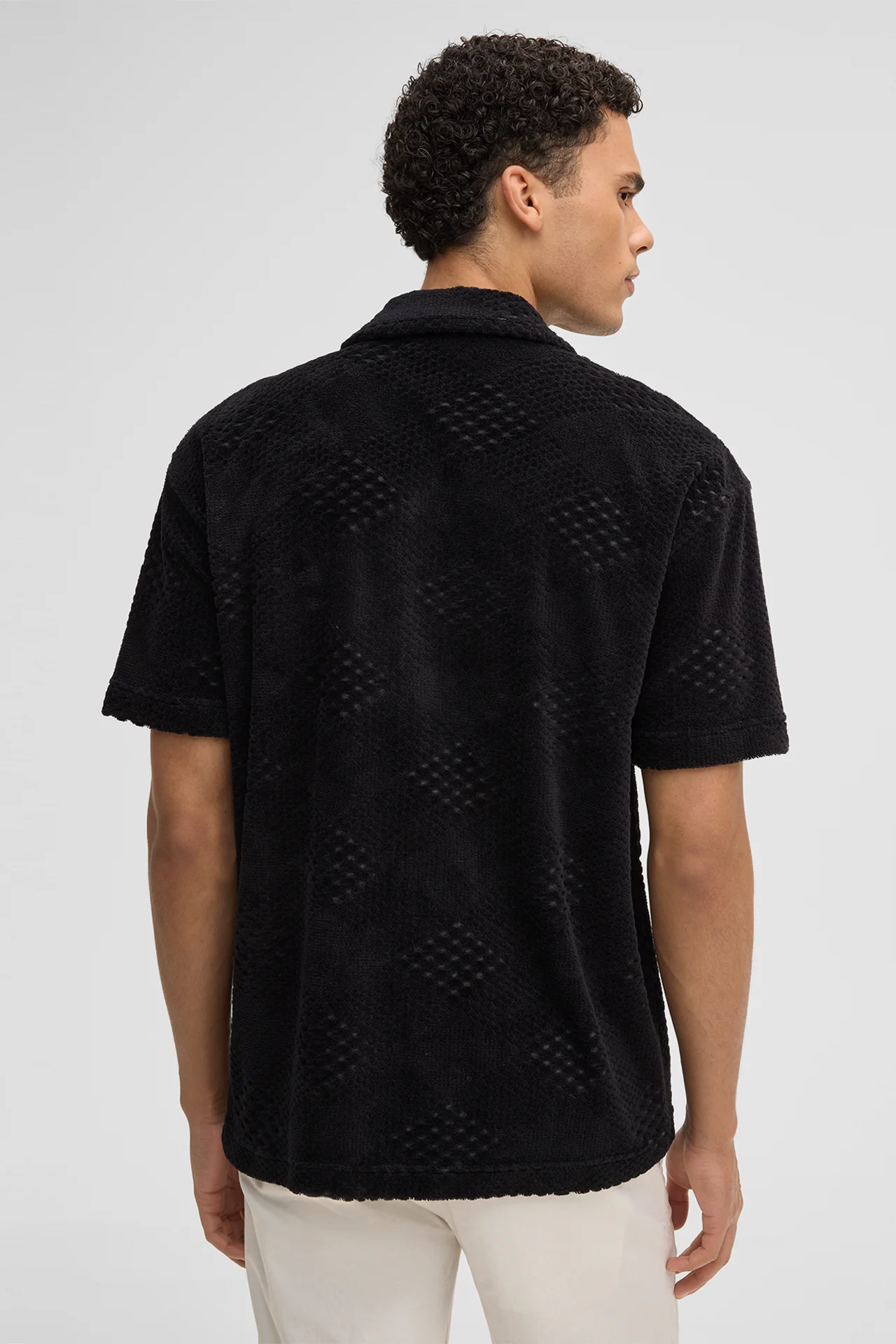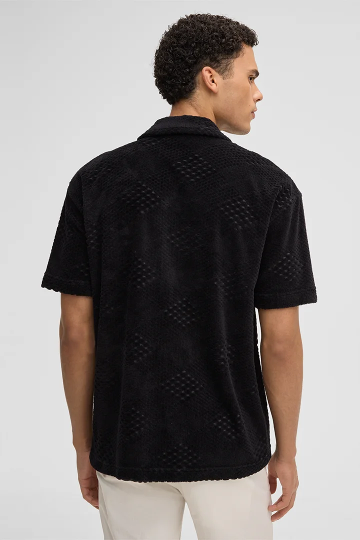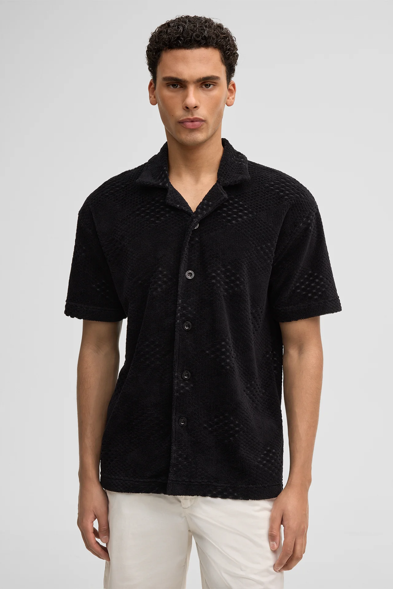 Lässiges Piece für Looks mit Shorts oder leichter Chino: das Samthemd Joseph in strukturierter Qualität im Baumwollmix. Kurze Ärmel, der moderne Haifischkragen und die durchgehende Knopfleiste zeichnen das Item aus.