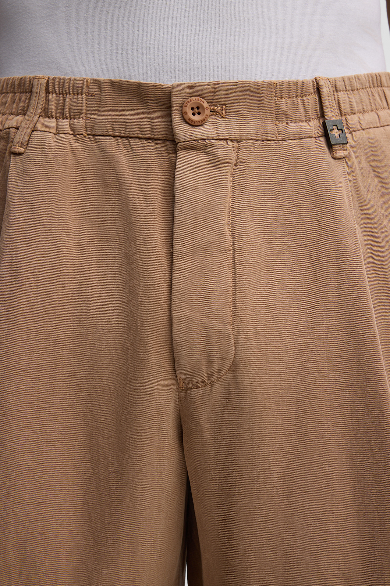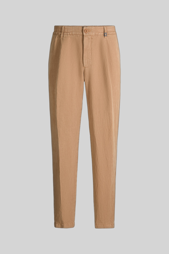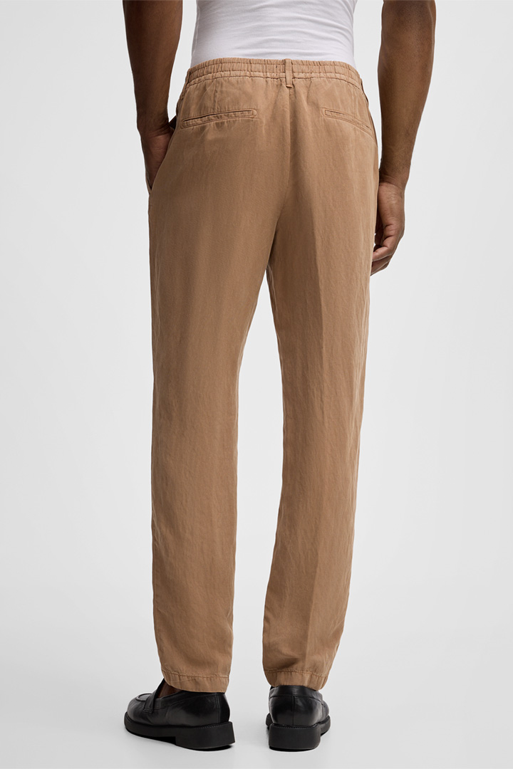 Casual Style für Freizeitlooks und sommerliche Anlässe: die Chino Lui aus Leinenmischung. Die lässige Optik akzentuieren der teilelastische Bund, Leistengesäßtaschen und Bundfalten. Logo-Details runden die Stoffhose modern ab.