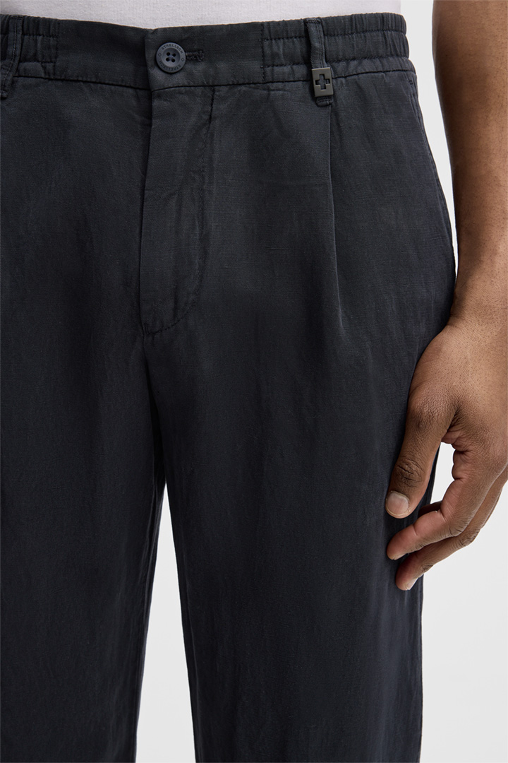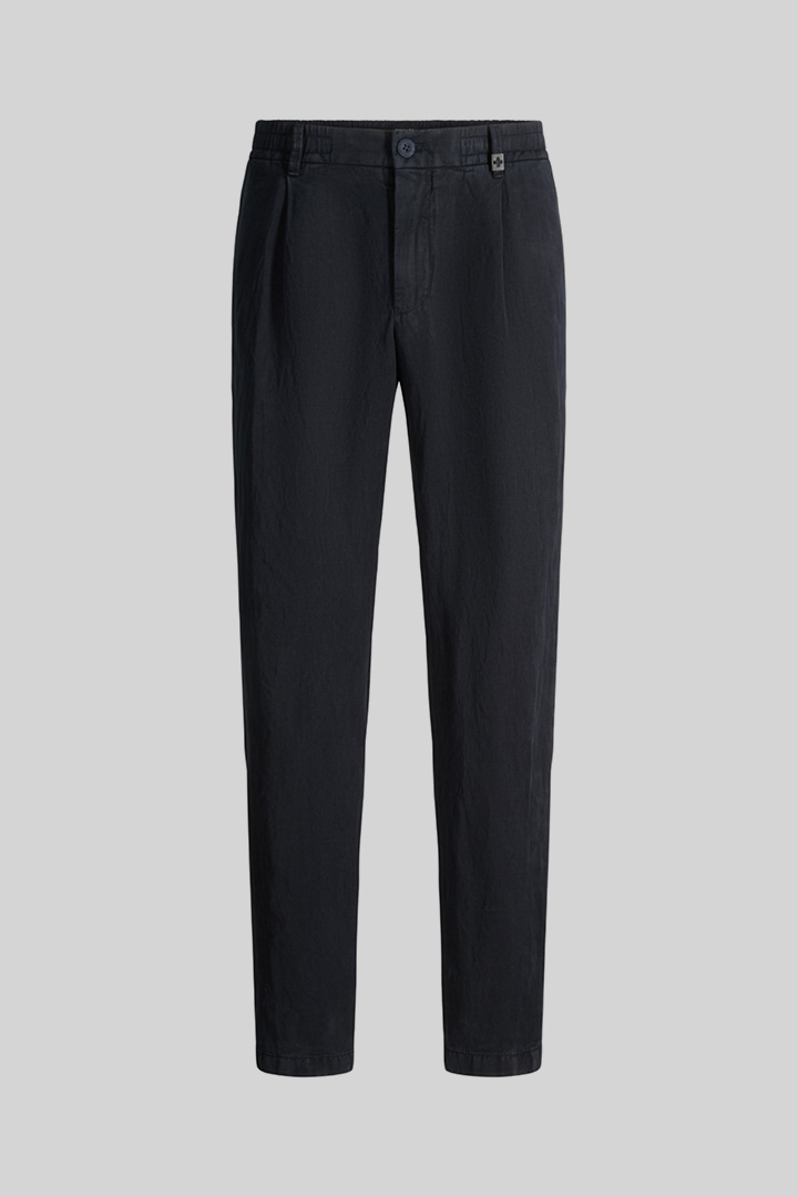 Casual Style für Freizeitlooks und sommerliche Anlässe: die Chino Lui aus Leinenmischung. Die lässige Optik akzentuieren der teilelastische Bund, Leistengesäßtaschen und Bundfalten. Logo-Details runden die Stoffhose modern ab.