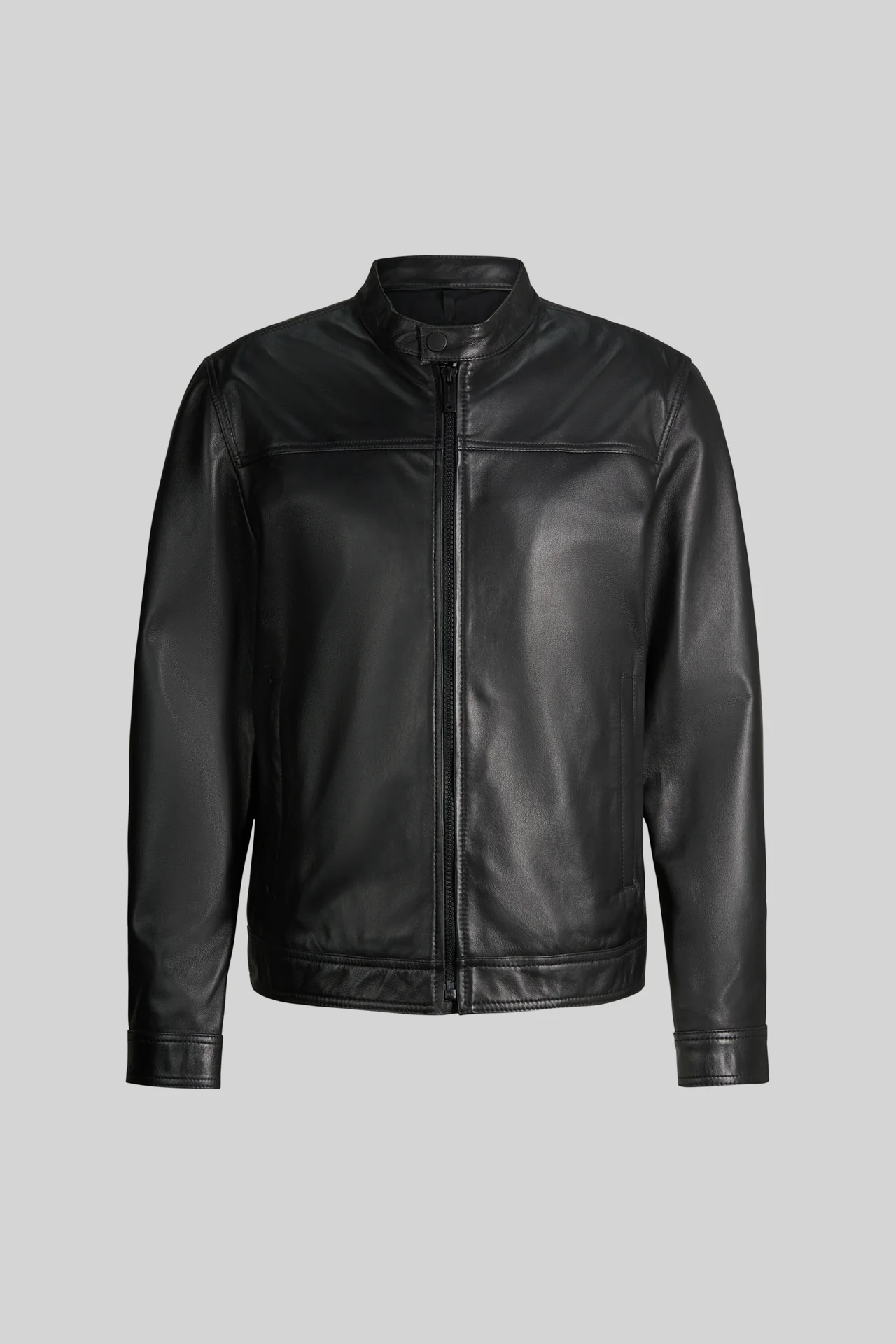 Als urbaner Style überzeugt die Lederjacke Jace mit knöpfbarem Stehkragen, Zip-Verschluss und modernen Teilungsnähten. Seitliche Leistentaschen und justierbare Ärmelabschlüsse runden das Piece funktional ab. Für den luxuriösen Appeal sorgt weiches Lammnappaleder. Der Allrounder passt zu Denims und casual Outfits mit Shirt, Chino und Sneakern.