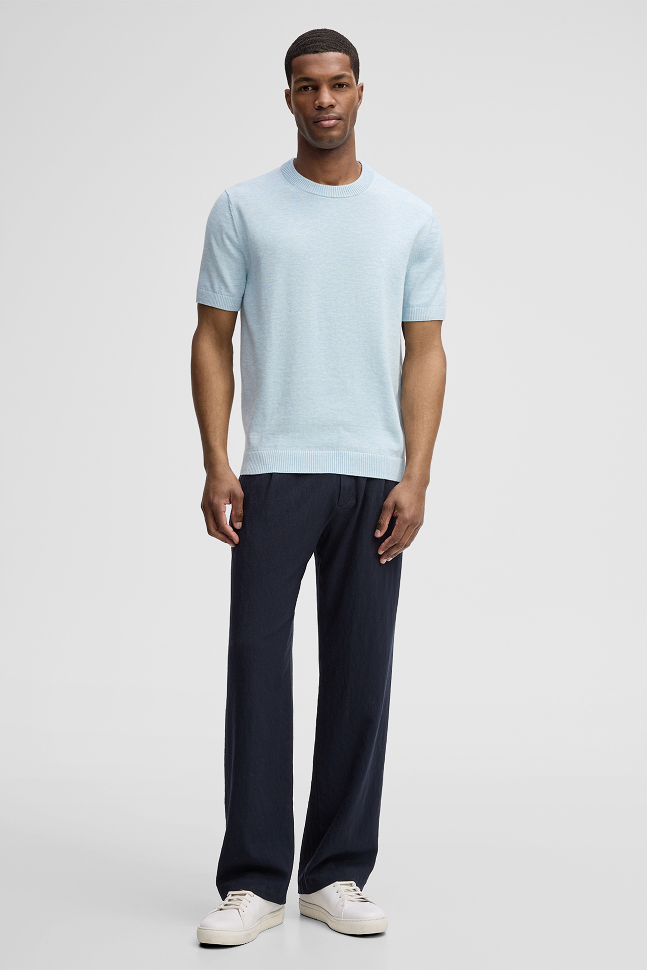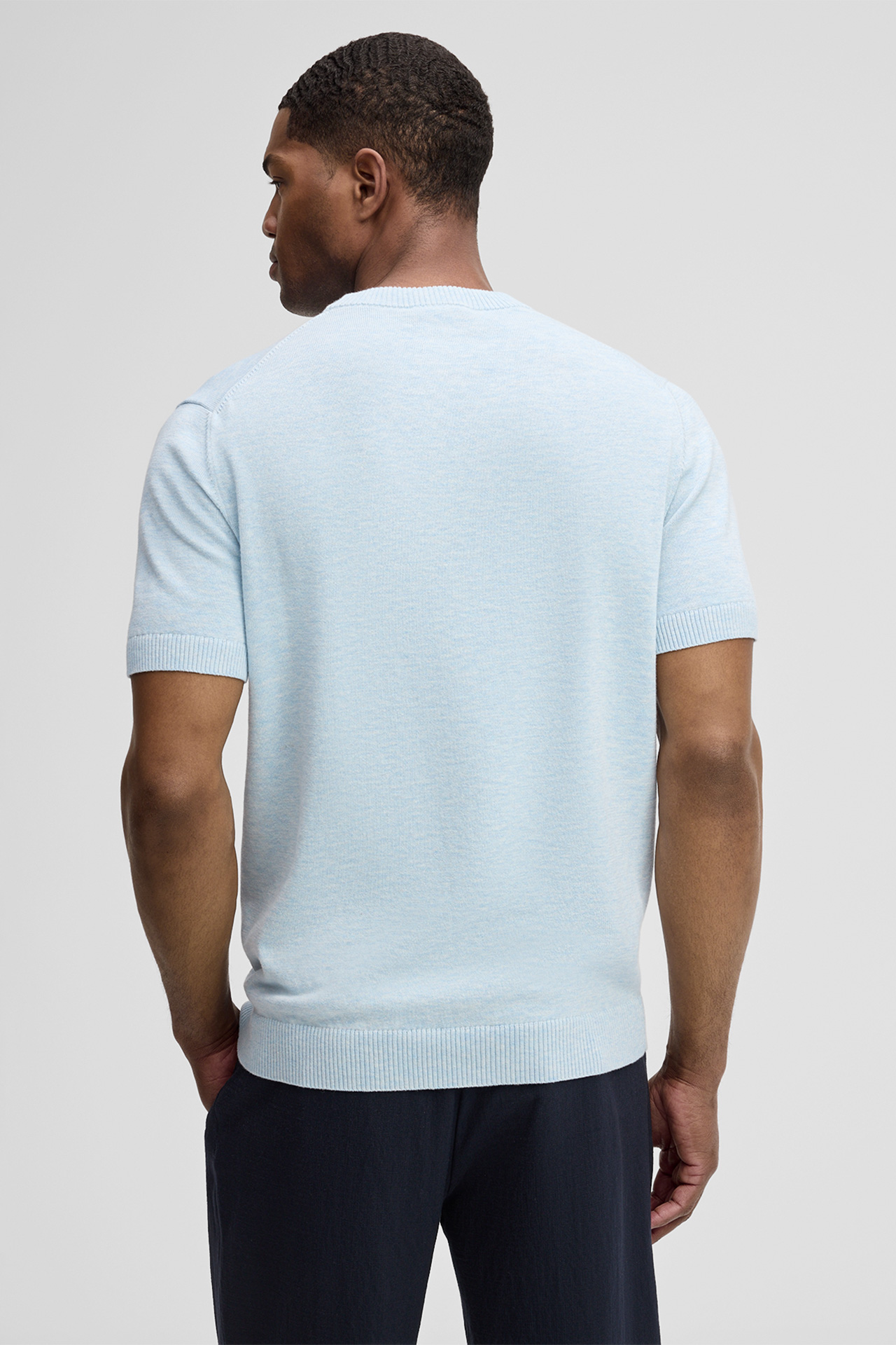 In modern melierter Optik präsentiert sich das kurzärmelige Strickshirt Loic als smarter Allrounder zu Jeans, Chinos oder verkürzten Anzughosen. Der Rundhalsausschnitt verleiht ein klassisches Finish, ergänzt durch gerippte Abschlüsse.