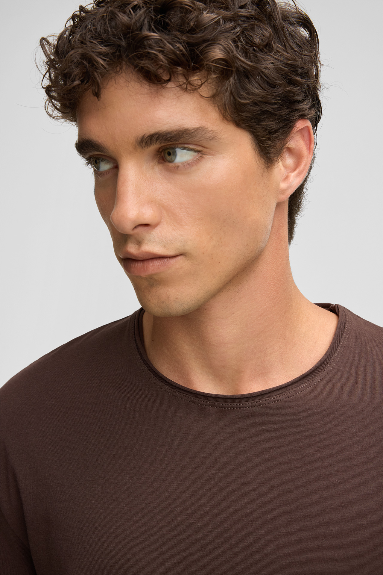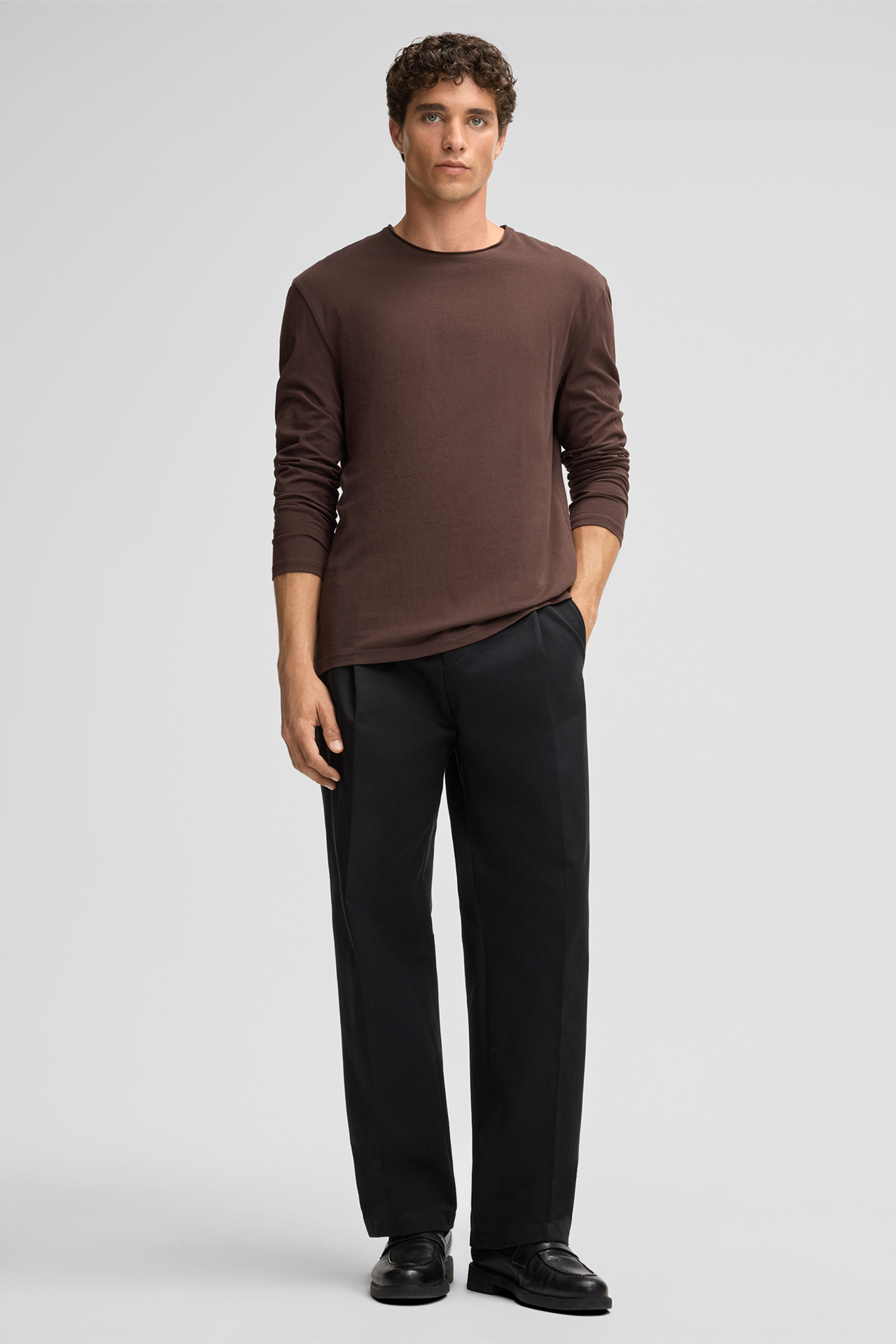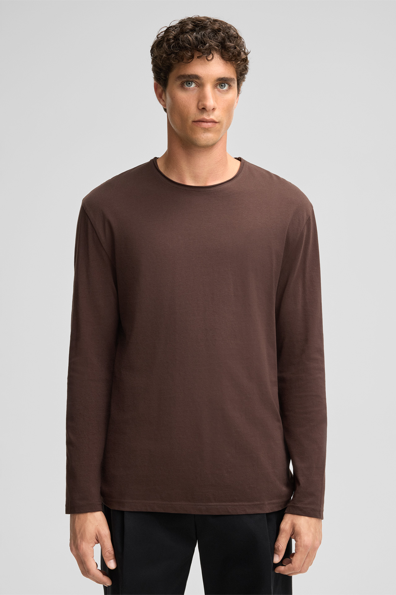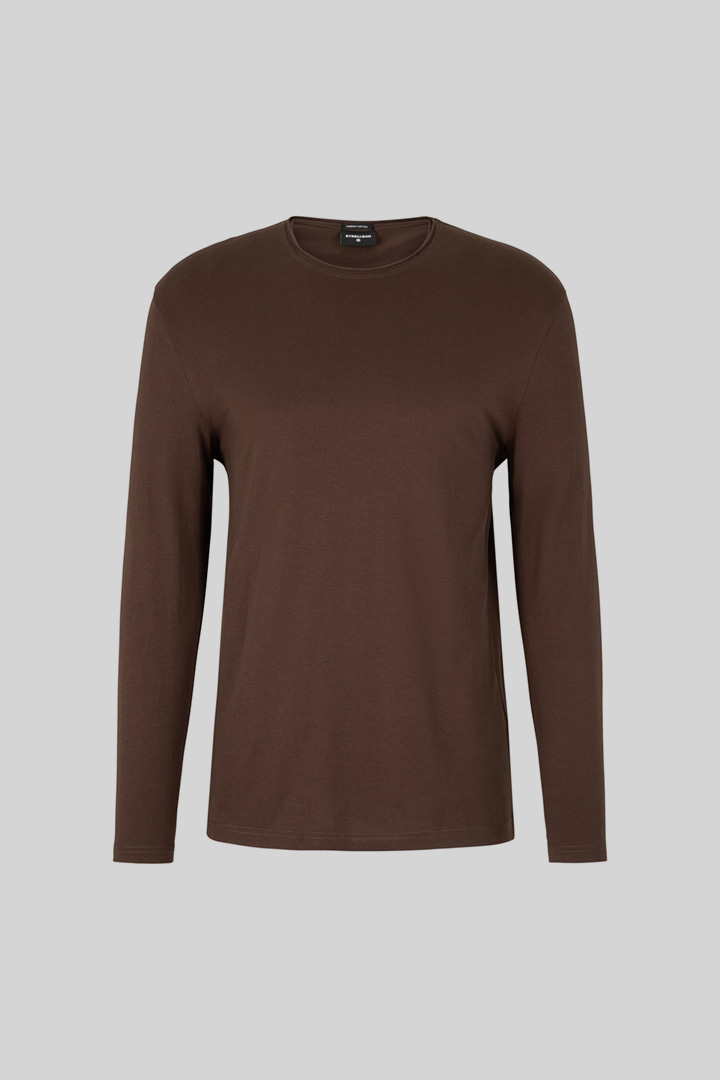 Perfektes Layering-Match: das Longsleeve Tyler aus reiner Baumwolle mit Rollsaumkante am Rundhalsausschnitt, ergänzt durch ein rückseitiges Rubber-Patch.