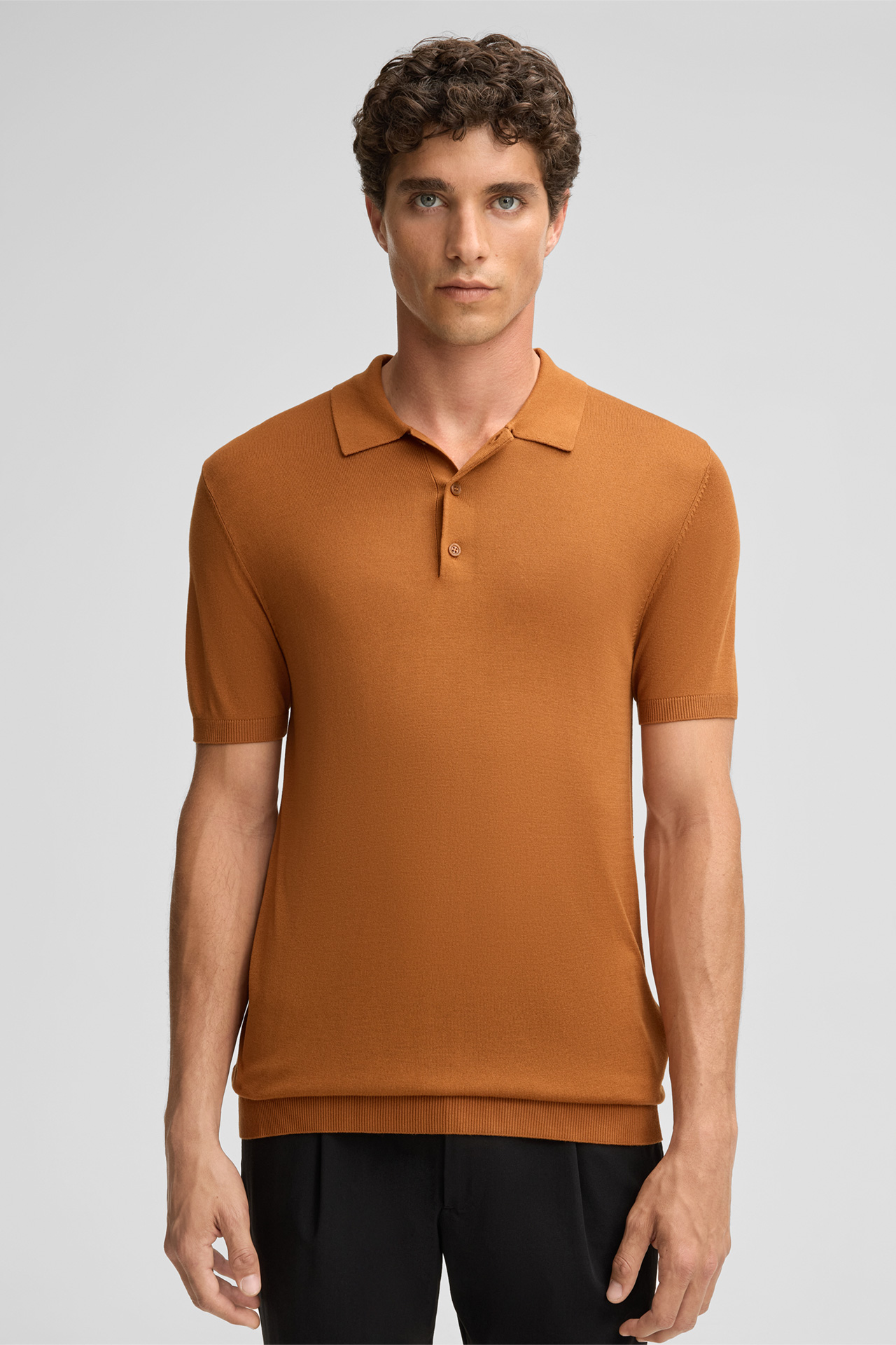 Klassisch-eleganter Style: das Poloshirt Vadim in Feinstrick-Qualität aus Viskose mit charakteristischem Kragen und komfortablen Rippsaumabschlüssen.