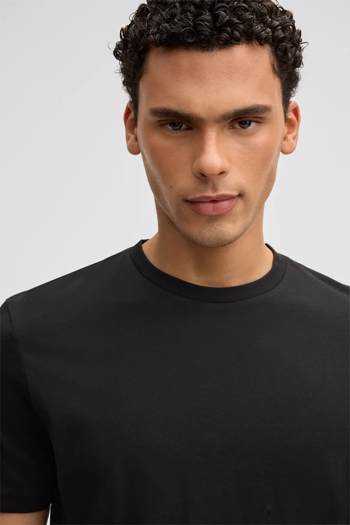 Favorite Basic-Piece: das T-Shirt Clark aus reiner Baumwolle mit klassischem Rundhalsausschnitt und tonigem Logo am rückseitigen Saum.