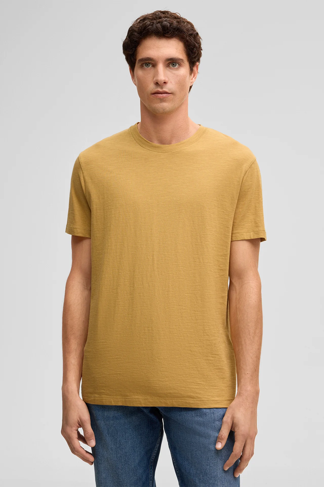 Das T-Shirt Colin überzeugt als komfortabler Allrounder mit Rundhalsausschnitt, Overlocknähten und tonigem Logo am rückseitigen Saum.
