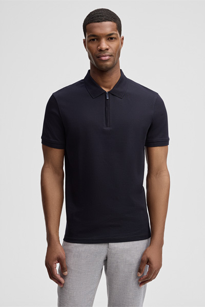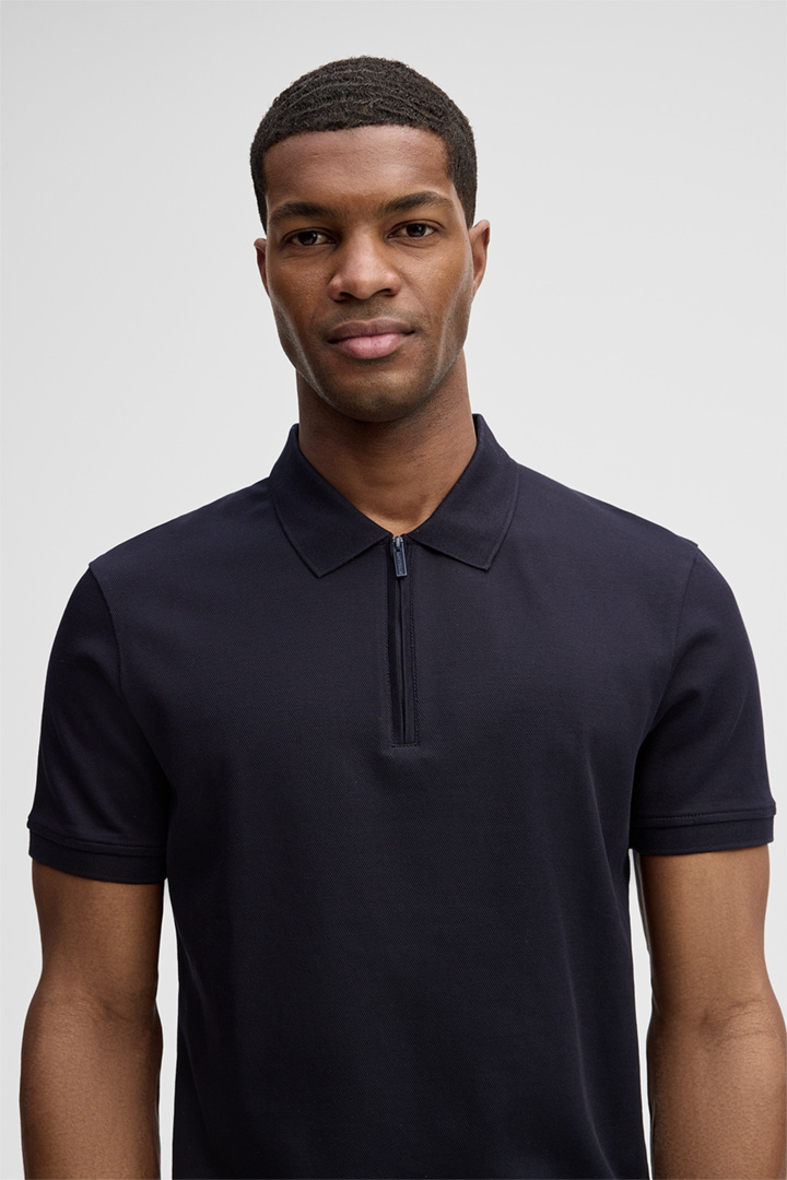 Piro überzeugt durch ein modernes Design mit Polokragen und logogeprägtem Zip-Verschluss. Puren Komfort bietet die Verarbeitung aus reiner Baumwolle im strukturierten Piqué-Stil.