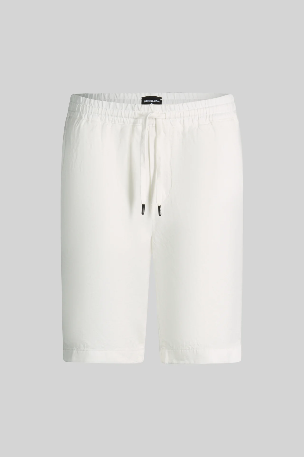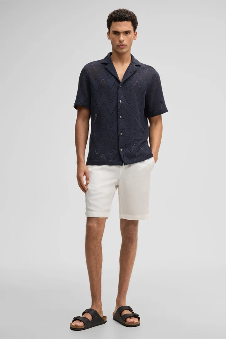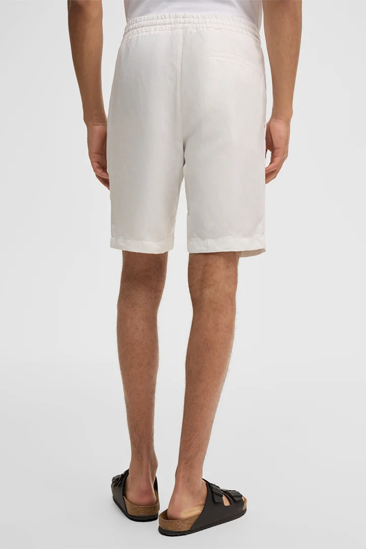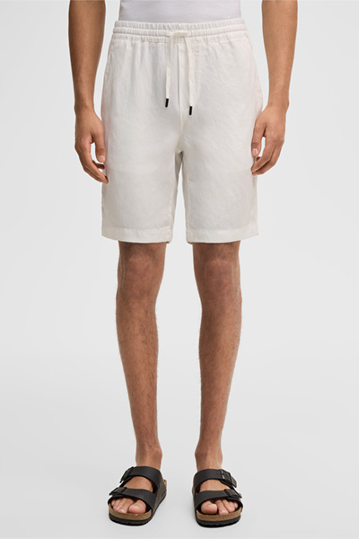 Perfekt für urbane Freizeit und Sommerlooks eignet sich die Bermuda-Shorts Kaji. Der leichte Leinen-Mix schenkt angenehmen Tragekomfort, ergänzt durch den elastischen Bund mit justierbarem Tunnelzug. Seitliche Eingriff und eine Leistengesäßtasche runden das Piece ab.