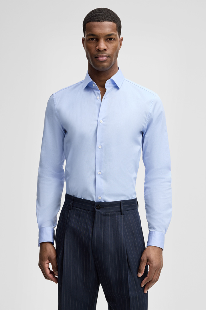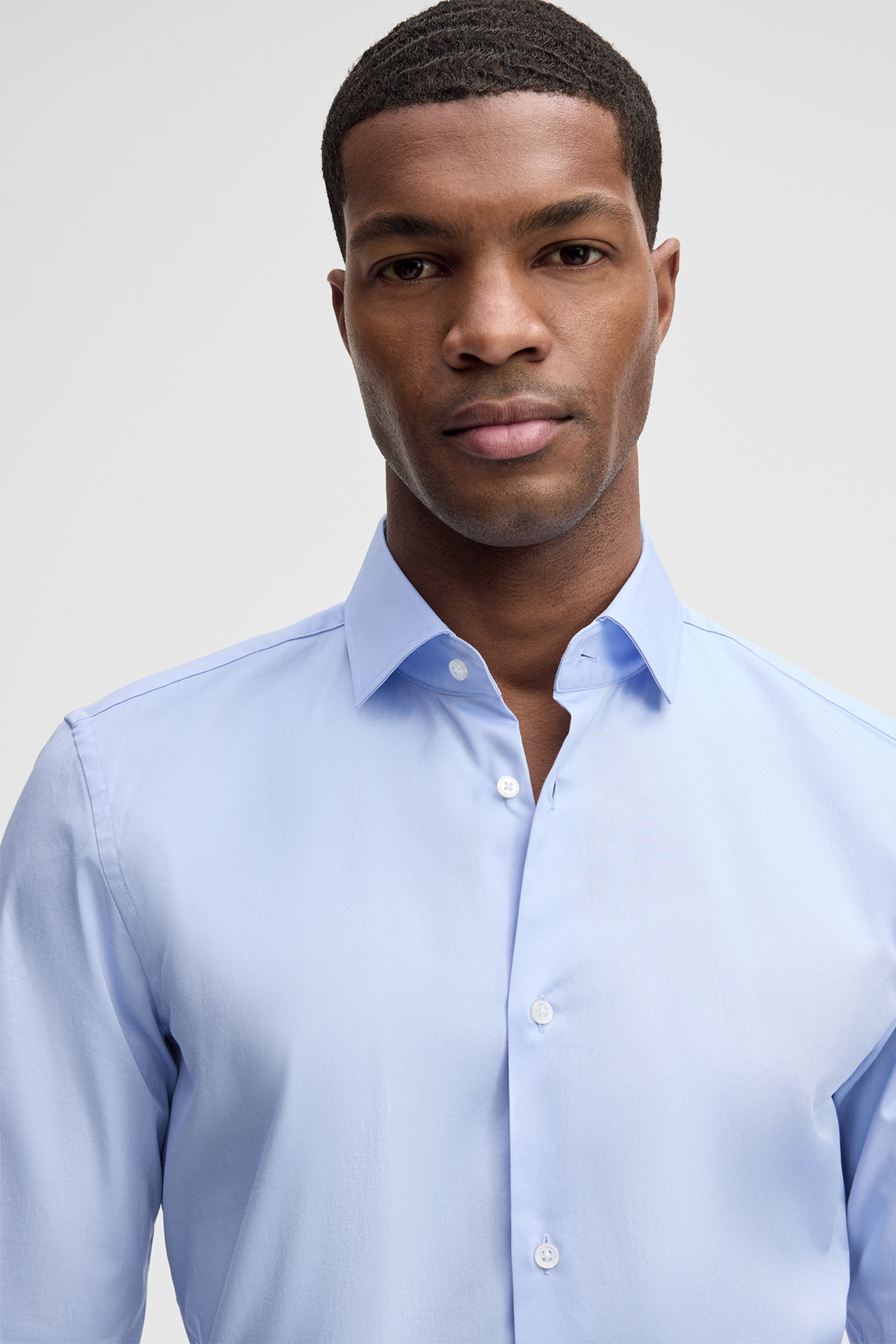 Smart im Office und darüber hinaus: das Hemd Stan aus Baumwollmix überzeugt im klassischen Design und schmaler Optik. Kentkragen, knöpfbare Manschetten und stilvolle Schulterpasse.
