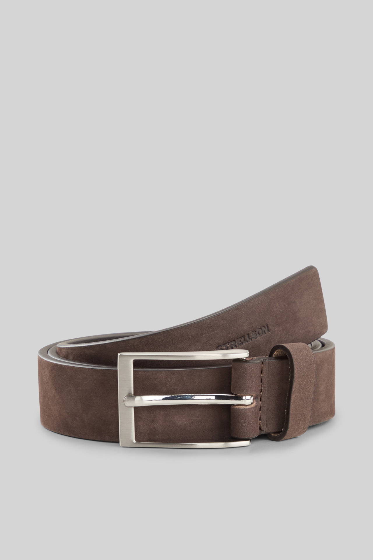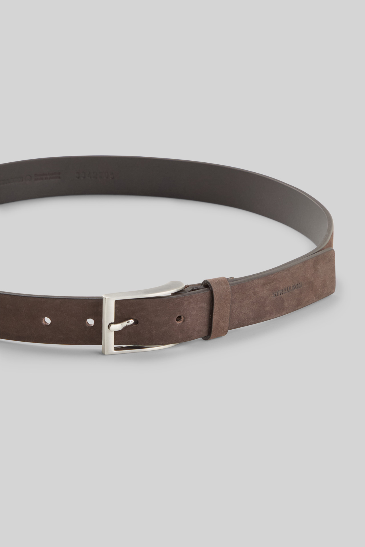A stylish accessory for pairing with suit trousers, chinos and denim: this leather belt in a clean-cut design boasts a square tip, embossed logo and metal pin buckle.