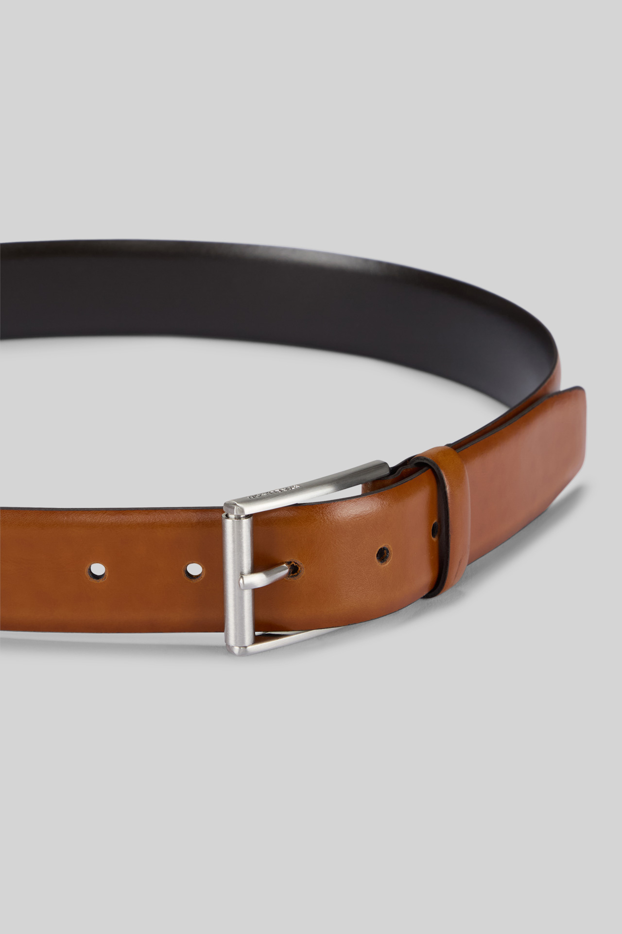 A key accessory for looks from smart to classic: this leather belt in an elegant design with adjustable perforations, a metal pin buckle and a leather keeper loop. Decorative stitching completes the piece.