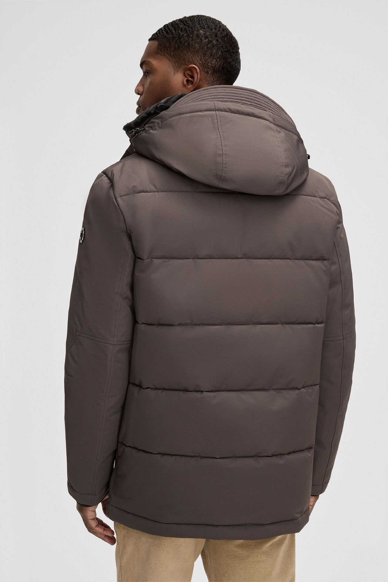 The quilted Plaza jacket, with recycled tech fibre padding, water and wind-proof features and a removable faux fur trim is warm essential.