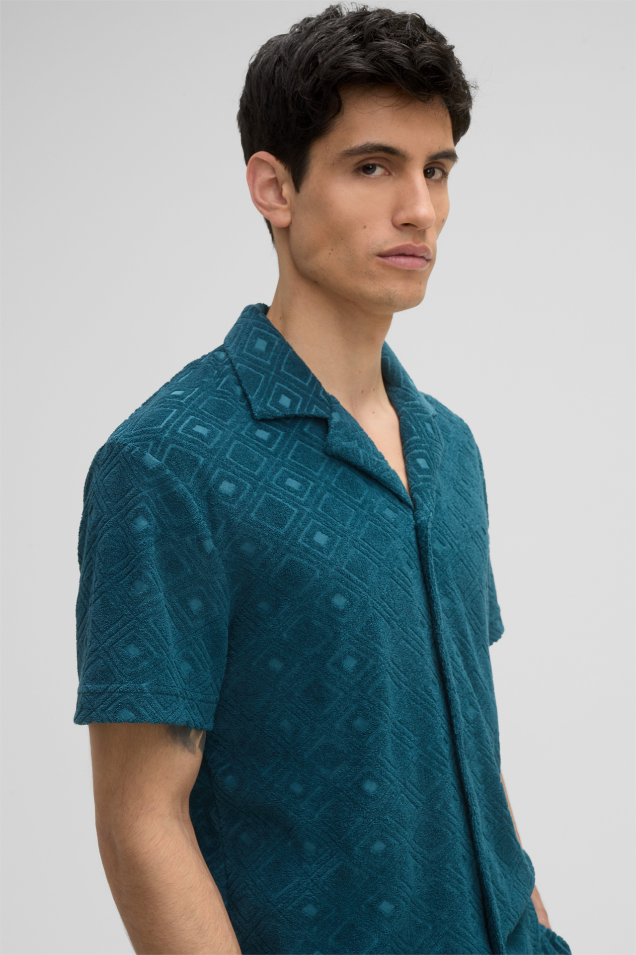 As a modern piece, the Joseph polo shirt scores highly with its subtle terry cloth quality. Featuring a signature collar, short sleeves and rubber logo flag.