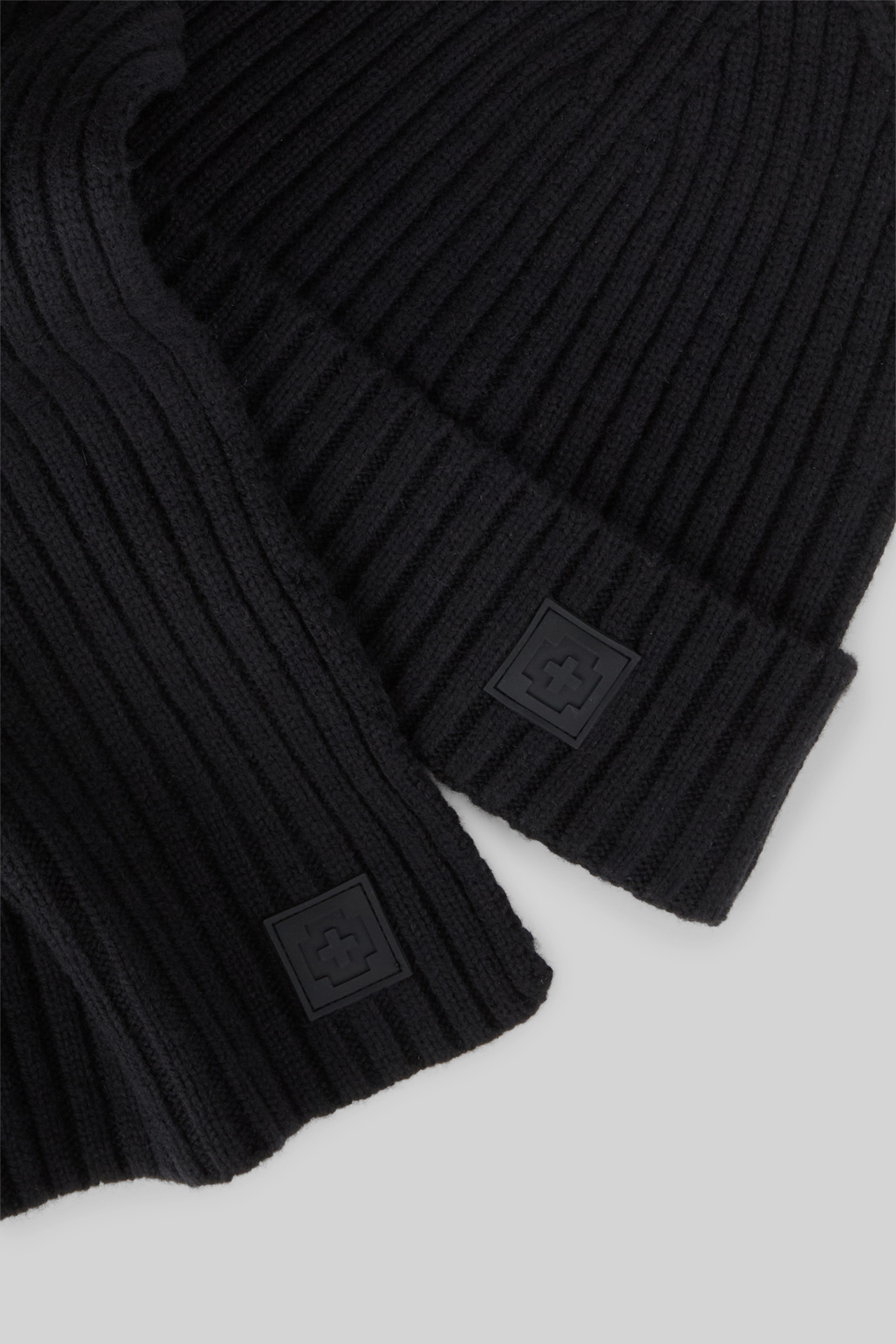 Lumo-BOX Hat and Scarf Set in Black Rib-knit