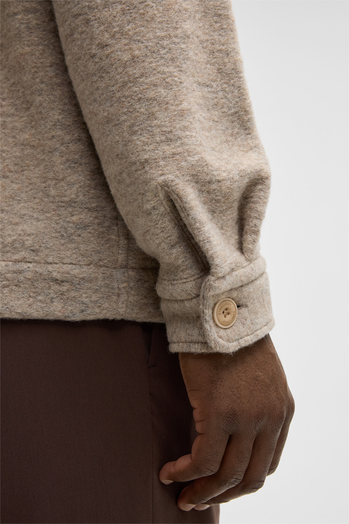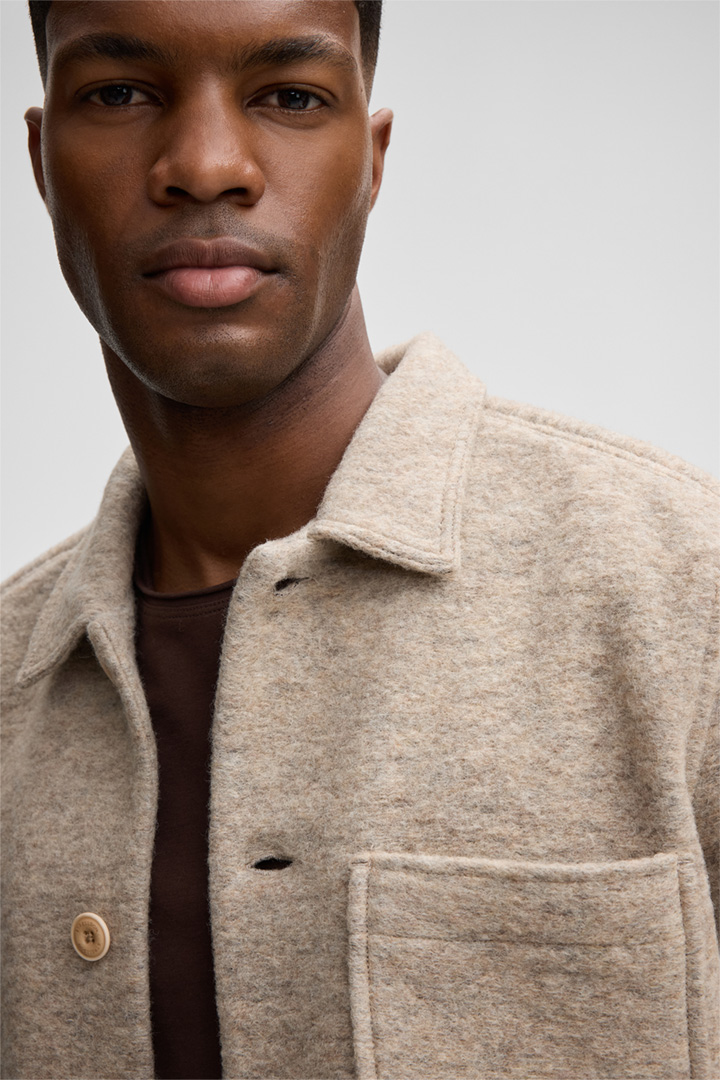Boiled wool and the mottled finish mark out the stylish look of the Noel overshirt. Logo-embossed buttons on the cuffs and fastening, as well as a patch breast pocket add accents. With Kent collar.