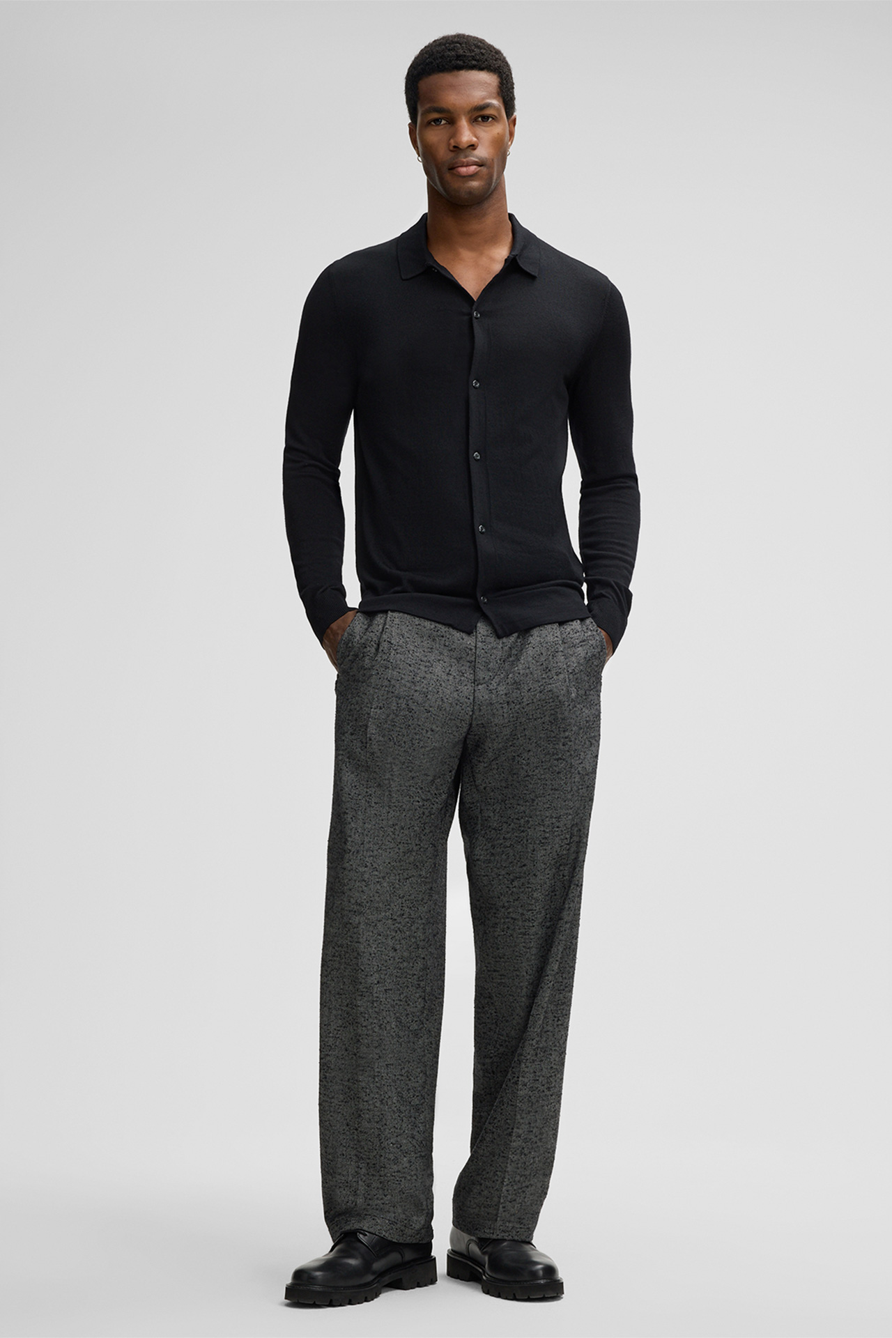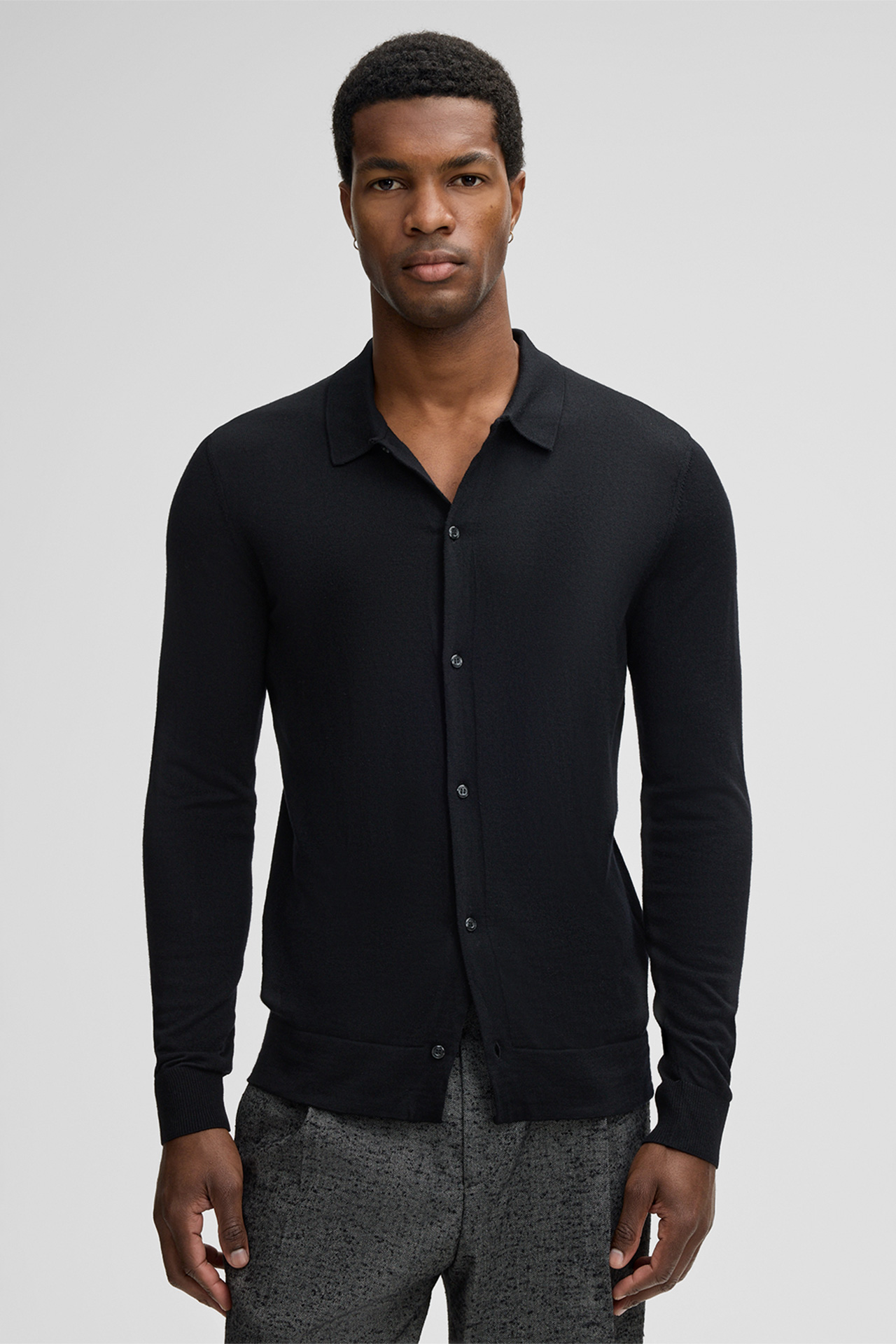 The Marek cardigan scores highly in pure virgin wool with a full-length, tonal button placket and comfortable ribbed cuffs.