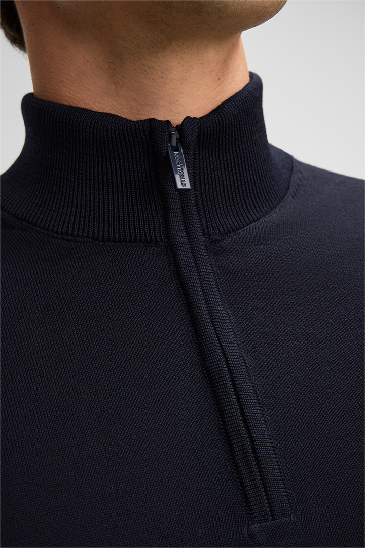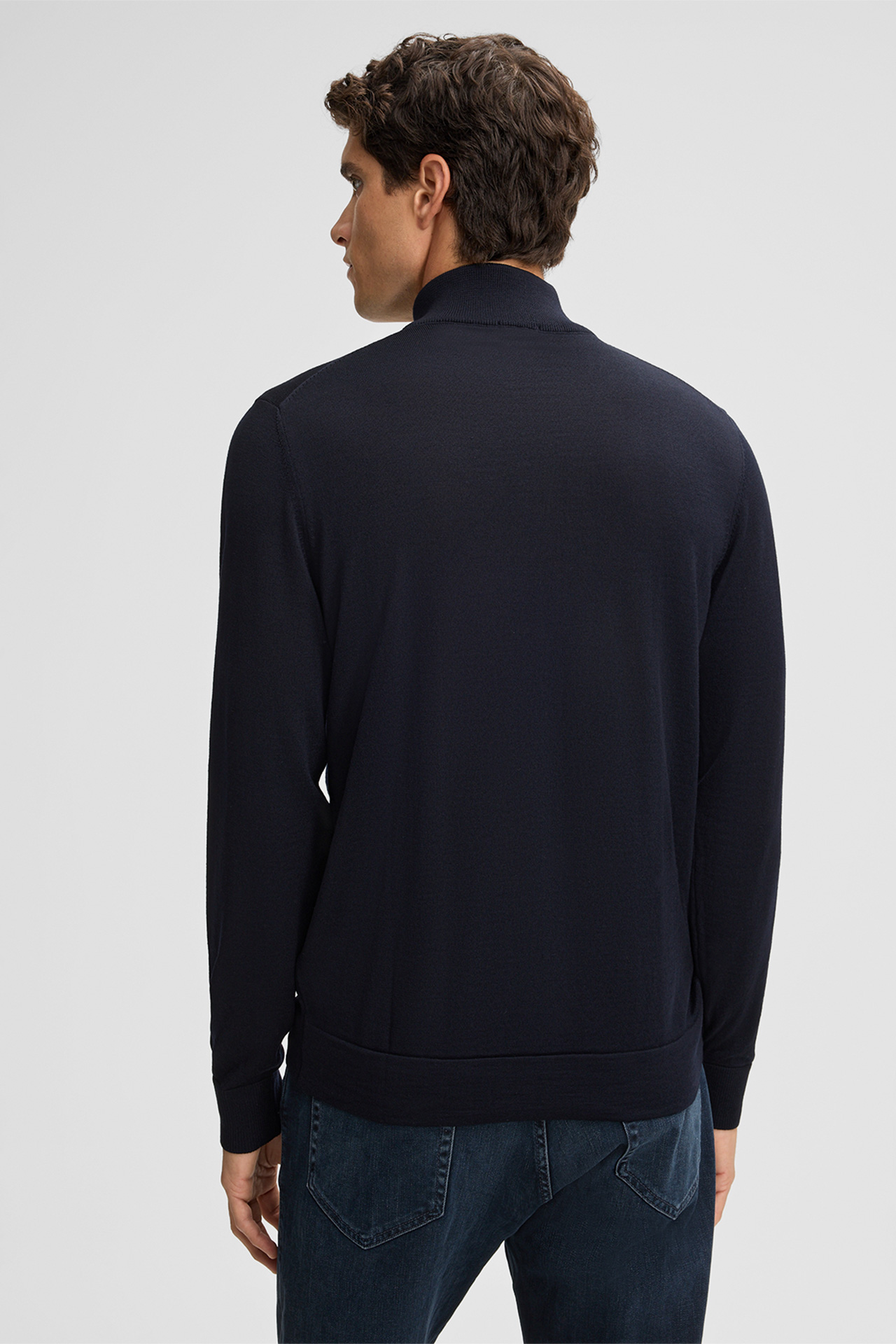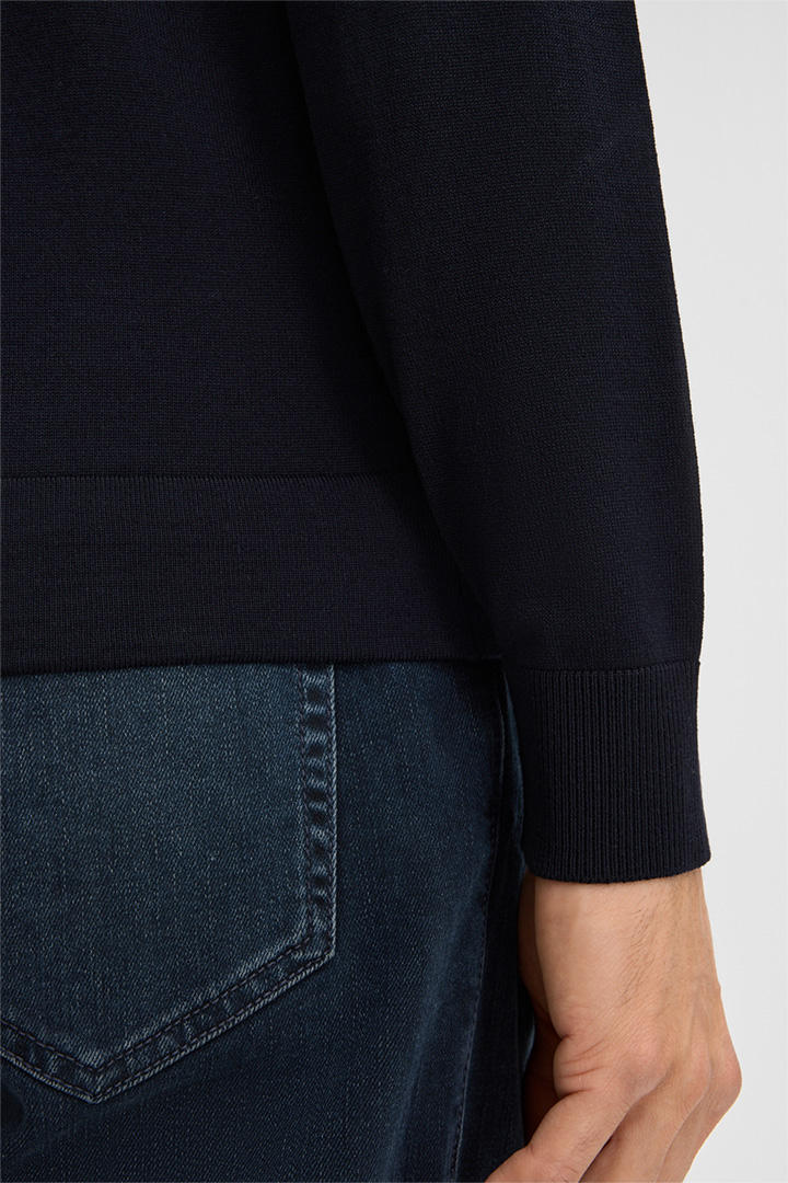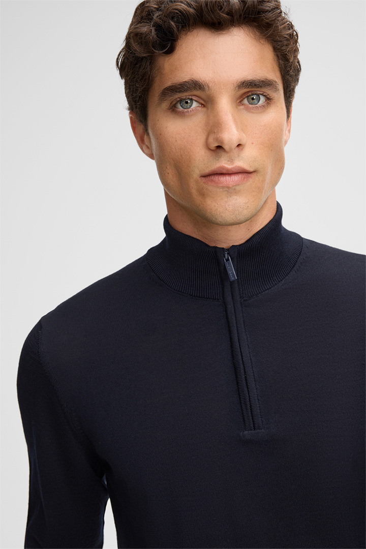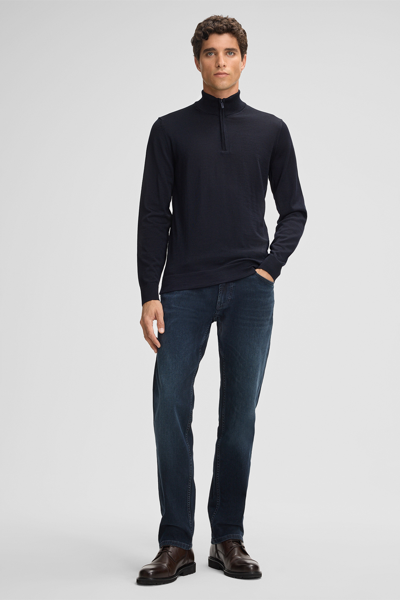 A comfortable classic: the Marek pullover with a Troyer collar. Ribbed cuffs and decorative stitching complement the design. Made from pure new wool.