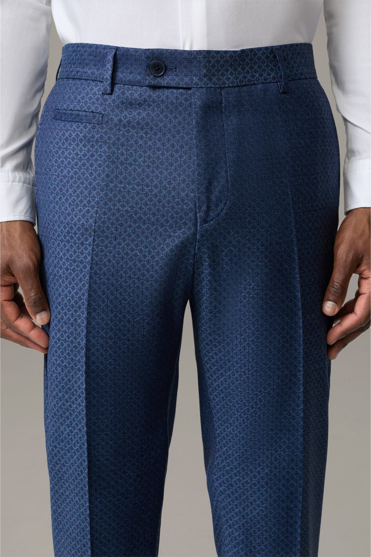 • Suit trousers in a geometric all-over pattern