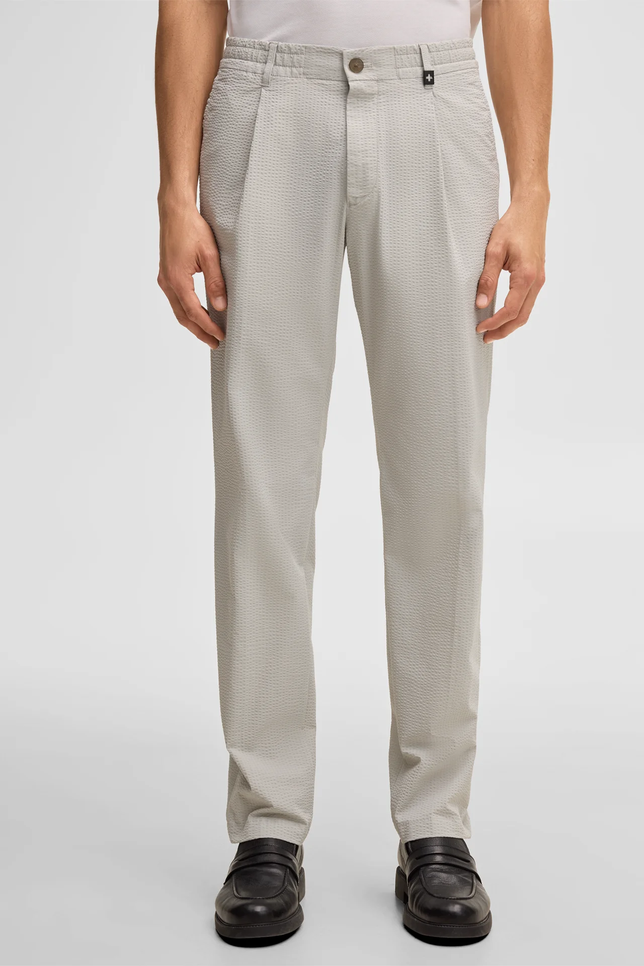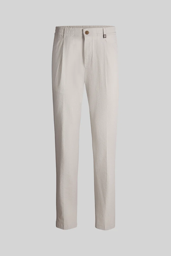 Strellson presenteert het product Flex Cross crêpe broek met plooien Lui, lichtgrijs uit de categorie Broeken